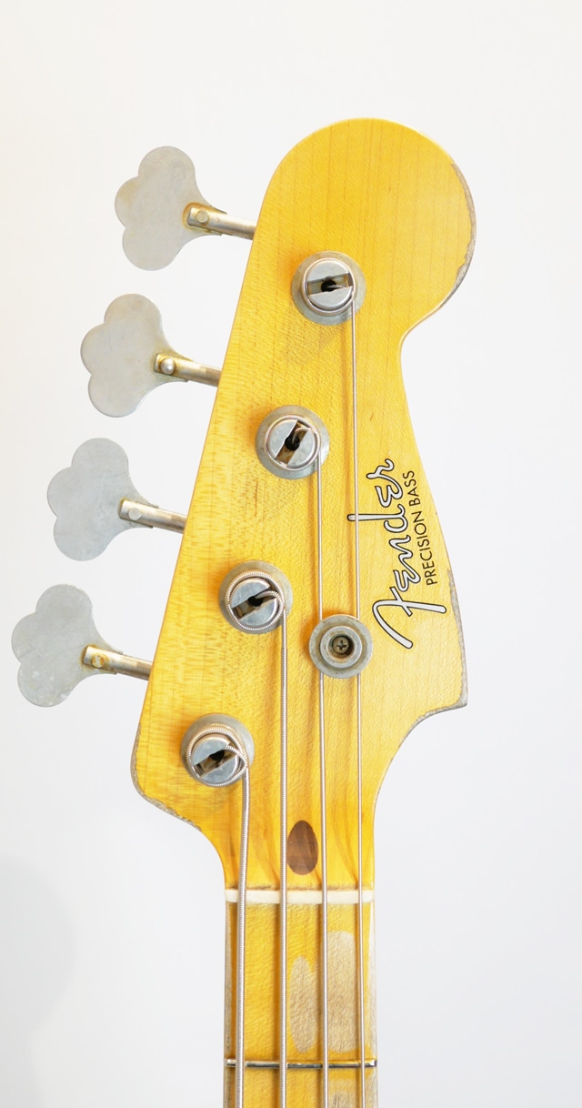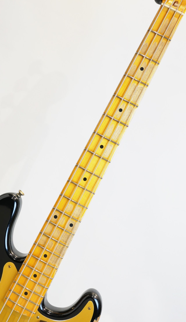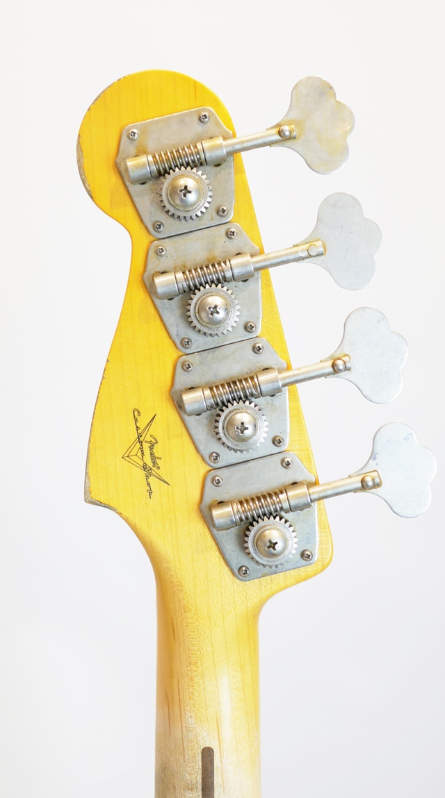 アルダーボディ、メイプルネック/メイプル指板。H/W 57P-BASSピックアップを搭載。3弦ポールピースのみ飛び出たスタックポールピースタイプのピックアップを搭載。雰囲気の良いレリックが施されてたビンテージライクなルックスが目を惹く個体。総重量約3.82kgと軽量です。アタックの強さと骨太なプレべサウンドを持ち合わせており、ハードピッキングでもサウンドは潰れる事なくしっかり反応してくれます。ソフトタッチにもしっかり反応致しますので、ダイナミクスの幅広さもこの個体の魅力の一つかと思います。フレットはここ最近定番の細くて背の高いNARROW TALLをセレクト、ビンテージライクなフィーリングを持ちつつプレイアビリティを高めたモデルになります。
