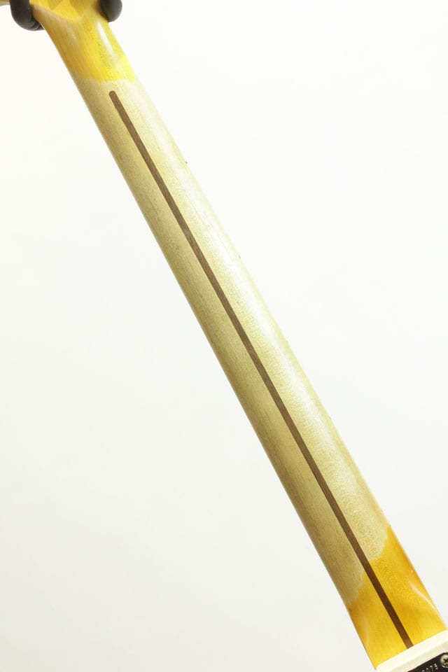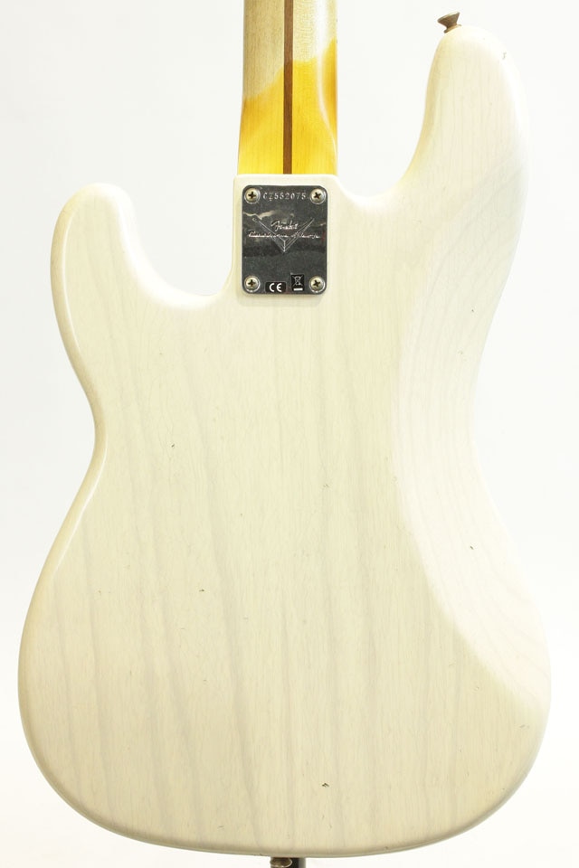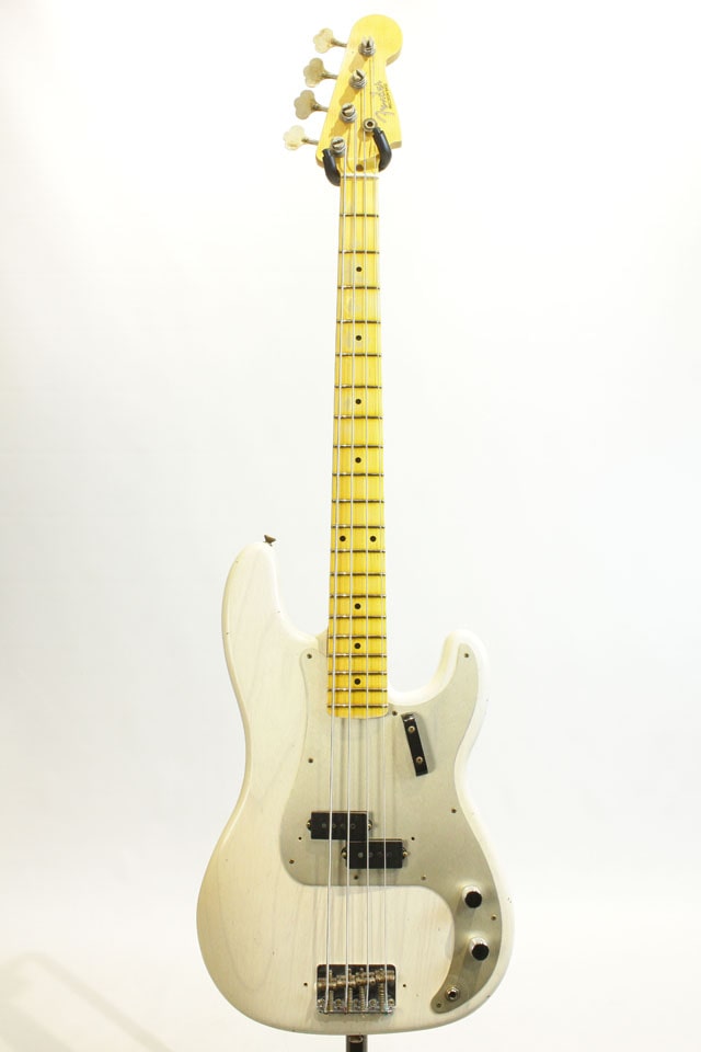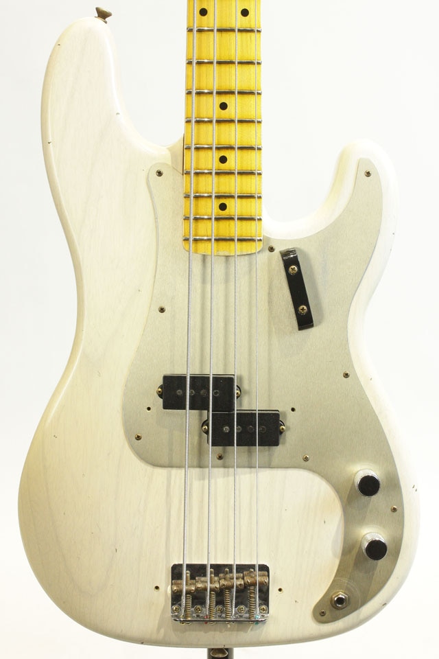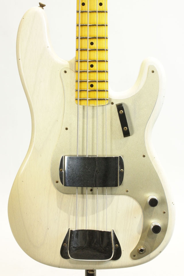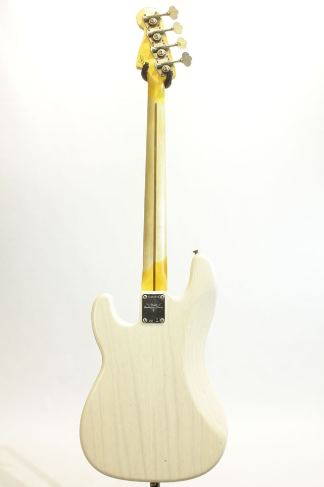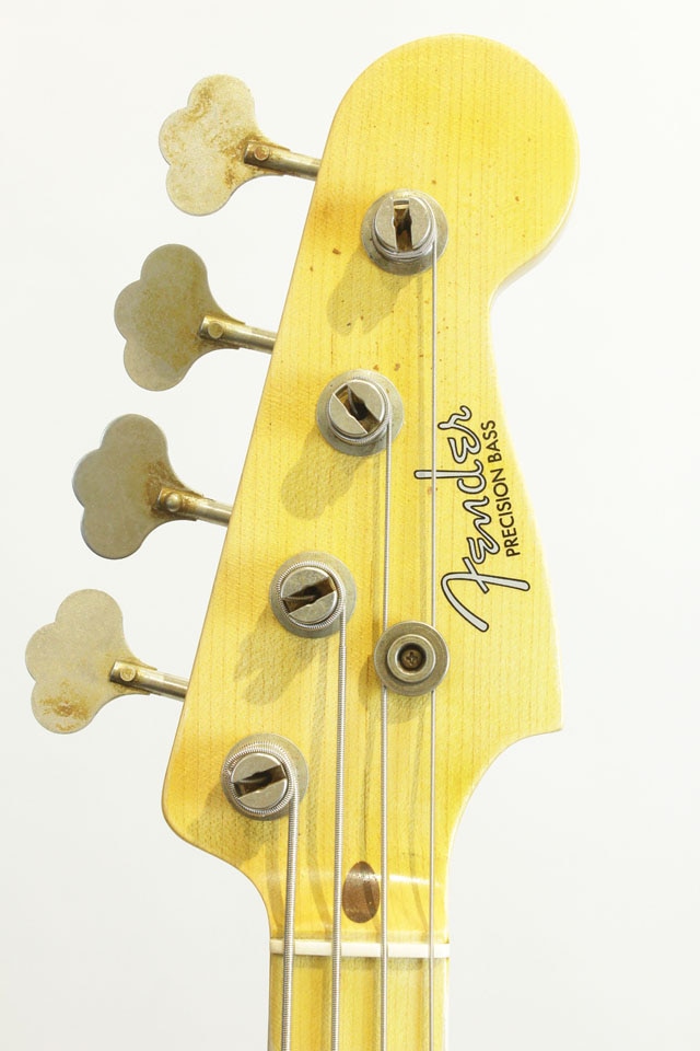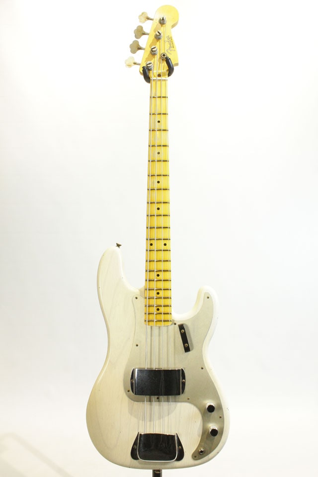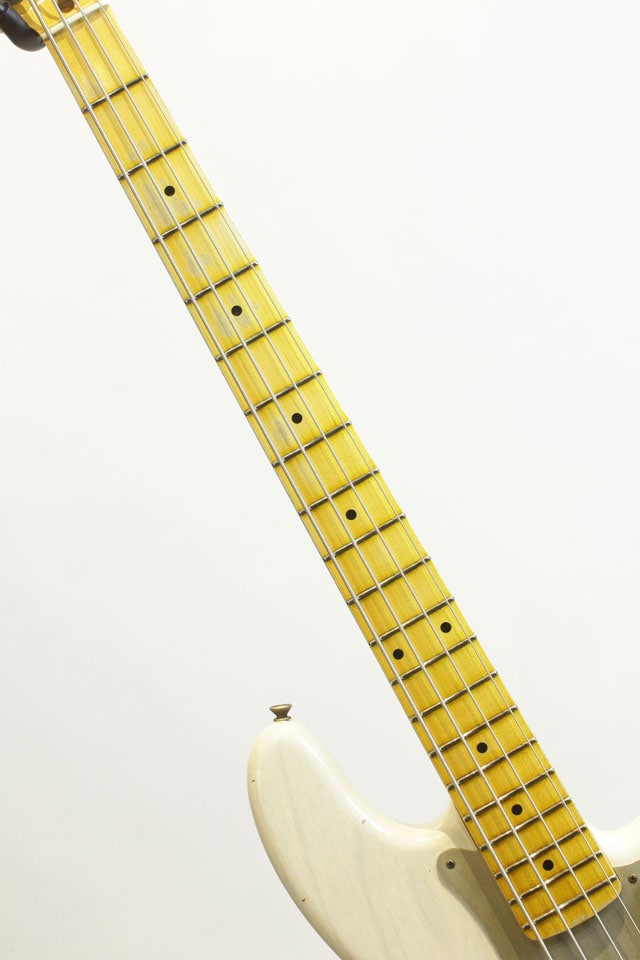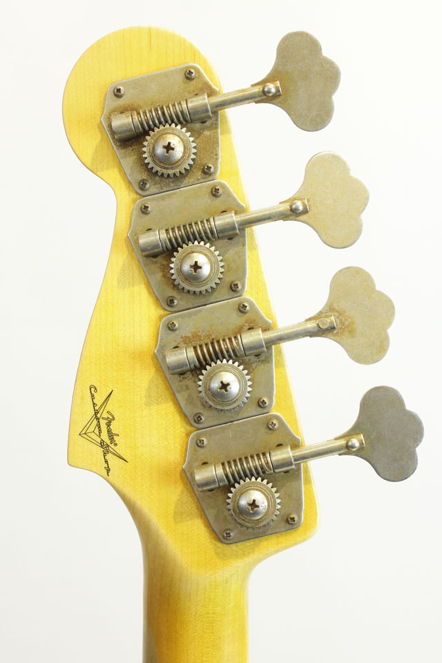 アッシュボディ、1pcメイプルネック/メイプル指板の王道1959スペック。ピックアップはハンドワウンドされた62 P-BASSを搭載。フェンス類をマウントした状態で総重量約3.6kgと軽量な個体です。ウェイトバランスも良く、著しいヘッド落ちもありません。アッシュらしい力強さと明瞭感の良いプレべサウンドを放つ個体。メイプルらしいアタック感もあり、ハードピッキングでも音像は潰れずに荒々しく再生致します。ダイナミクスレンジが広い印象で、表現力に幅を持った個体だと思います。ジャーニーマンレリックが施された雰囲気の良さもあり、レリックに引けを取らないビンテージライクな枯れたニュアンスも持ち合わせております。