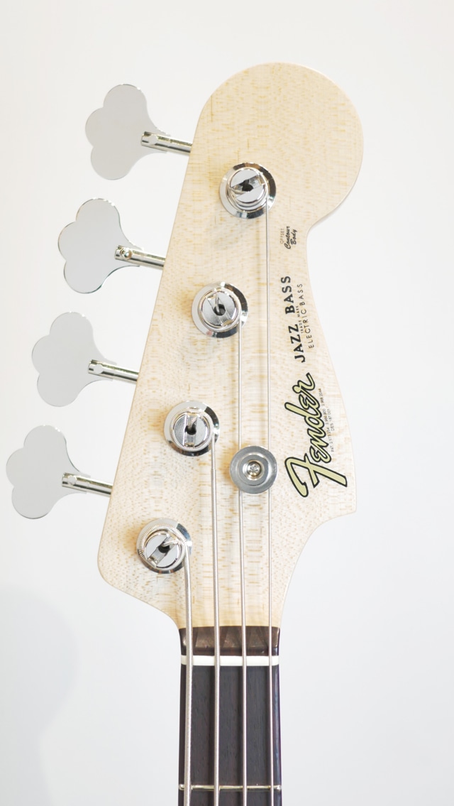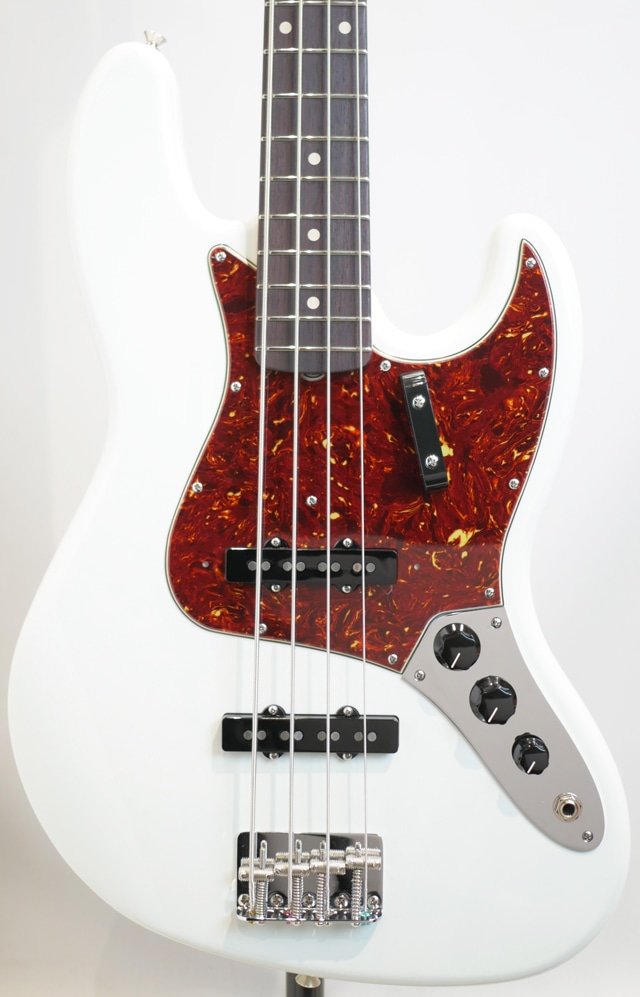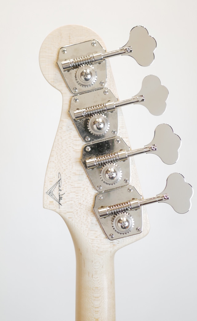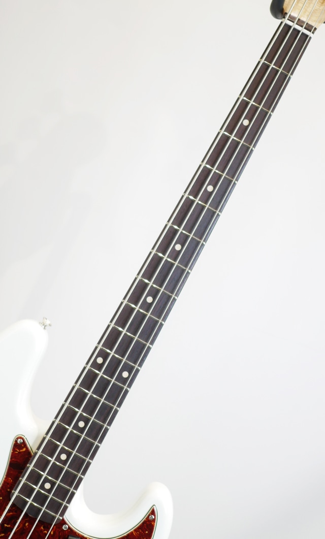 アルダーボディ、綺麗なクォーターソンにて木取りされたメイプルネック/ローズ指板(スラブ貼り)。HW VINT J-BASS SETを搭載。指板ラディアスは9.50R設計ですので低めの弦高セッティングも可能です、フレットはNARROW TALLをセレクト。60sのスペックを基にプレイアビリティ