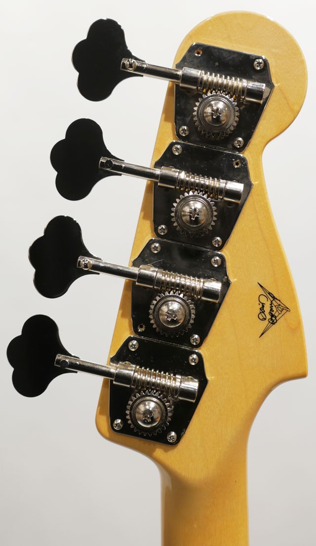 この度オーダーした作品は1960 Precision Bassをベースにオーダー。アルダーボディ、フラットソーンにて木取りされたメイプルネック/スラブ貼りのローズ指板、ラディアスは7.25Rになります。ピックアップは同じくマスタービルダーのJosefina Camposによるハンドワンドピックアップをオファー、62P-BASSを基にオーバーワインド頂きました。結果的にボトムの存在感が強調されたウォーム且つ野太いプレべサウンドを響かせてくれます。ビンテージライクなスペックにて構成されたモデル。遊び的な要素は無く、ストレートなフェンダープレシジョンベースにてオーダー致しております。