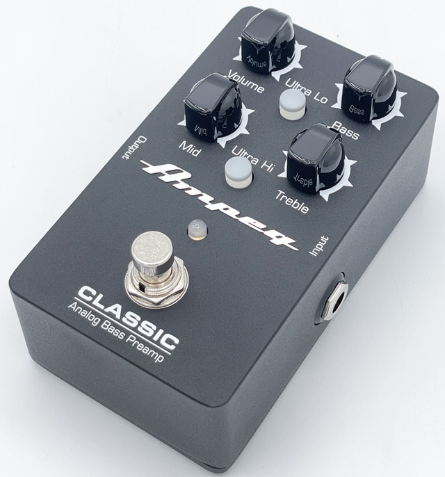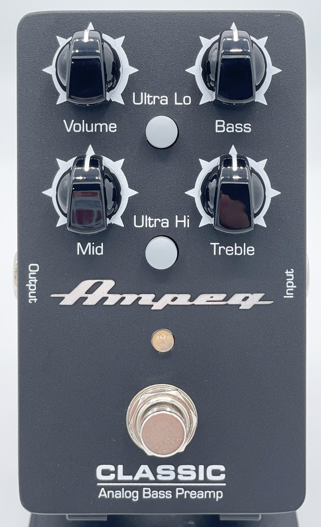 CLASSIC は、エフェクターボードにも収納可能な小型のペダルながら、3 バンドのトーンコントロールや、AmpegならではのULTRA-HI/ ULTRA-LO を組み合わせ、リアルなAmpeg サウンドを最もお手頃な価格で実現した製品となっております。CLASSIC は他の Ampeg 製品と同様ミュージシャンによって設計され、最高品質の部品のみを使って製造されております。