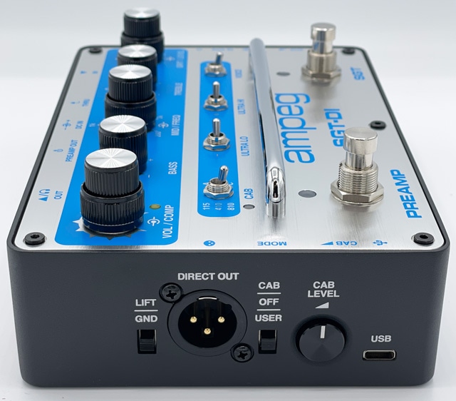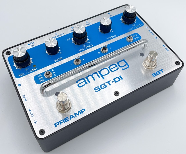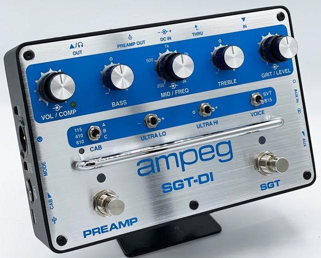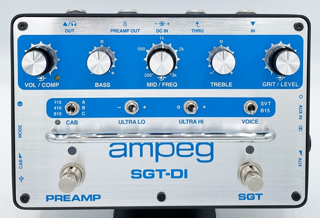 SGT?-DIプリアンプ/DIは、現代のベーシストにストンプボックス1台で完結するリグを提供します。象徴的なAmpeg SVT?とB15のボイシングを特長とする強化されたSuper Grit Technology? オーバードライブ回路、スイープ可能なMID回路を備えた汎用性の高い3バンドEQ、ウルトラ・ハイおよび3ウェイ・ウルトラ・ロー・スイッチ、可変コンプレッサー、Aux/ヘッドホン接続部が用意されています。そして注目すべきは、Ampegで初めてIR(インパルス・レスポンス)のロードが可能となり、キャビネット・シミュレーターも搭載されました!3種類の定番のファクトリー・キャビネットIRから選択できるほか、Ampeg IR Loaderアプリを使用することで、最大3種類までのお手持ちのキャビネットIRをUSERエリアにあるファクトリーキャビネットIRと入れ替えて選択することができます。