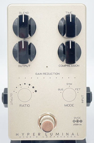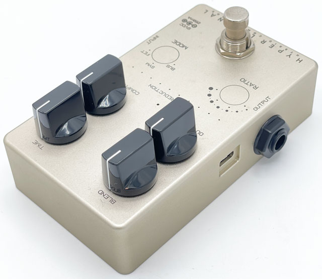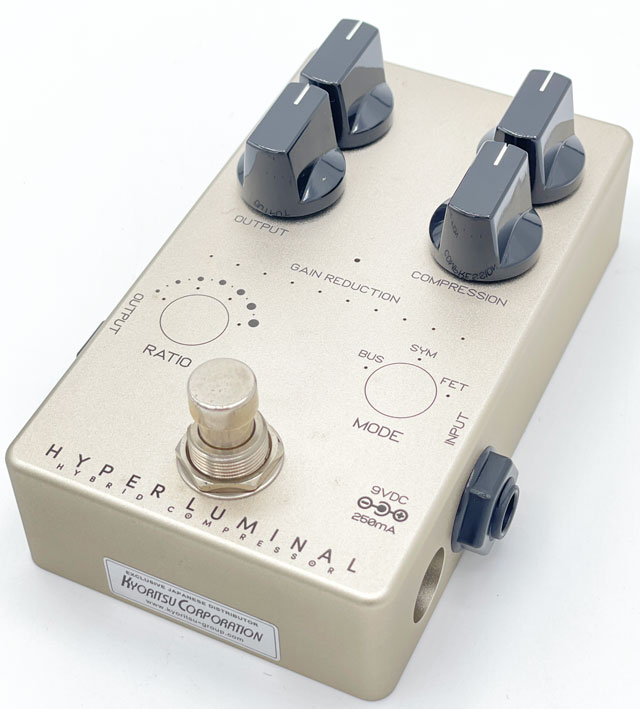 Hyper Luminal はアナログの回路を最新デジタルテクノロジーで制御することで、3種類の代表的なコンプレッサーのエッセンスとキャラクターを完全なアナログ回路でモデリングした Darkglass の次世代コンプレッサーで、その他にもレシオとモードの切り替えには新しいタッチセンサーを採用し、USB ケーブルで PC/MAC と接続することで、TIME ノブでコントロールするアタック・リリースの細かいセッティングが可能です。