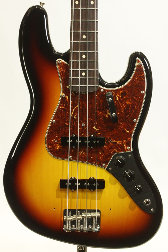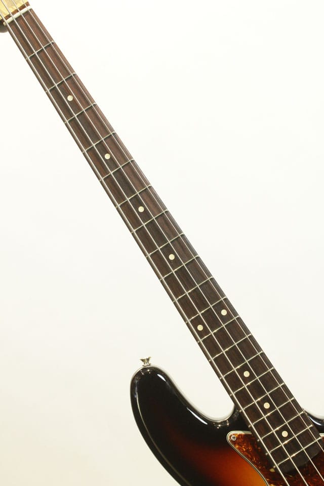 アルダーボディ、メイプルネック/ローズ指板(ラウンド貼り)。ハウンドワウンドにて制作されたVINT J-BASSピックアップをセットで搭載。指板ラディアスは9.5Rにてオーダー。フレットはNARROW TALLですのでビンテージライク且つ少々高めのフレットをセレクト。フェンス類を含めた総重量は約4.3kgと標準的なウェイトをキープ。1964のスタイルを崩さずにプレイアビリティを向上させた内容にてオーダー致しました。