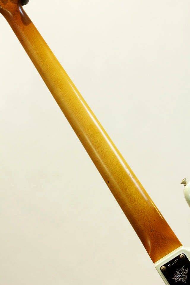 ドットバインディングネックのearly1966スタイルにてオーダー。アルダーボディ、綺麗なクォーターソーンに木取された剛性の高いネック/ローズ指板(ラウンド貼り)指板ラディアスは9.5Rに設計しておりますので、プレイアビリティの高い個体です。ピックアップはハウンドワウンドのビンテージタイプをセレクト。フェンス類を全てマウントした状態で、総重量は約4.1kgと比較的軽量なウェイトをキープ。ウェイトバランスも良好です。ペグもパドルペグを装備。