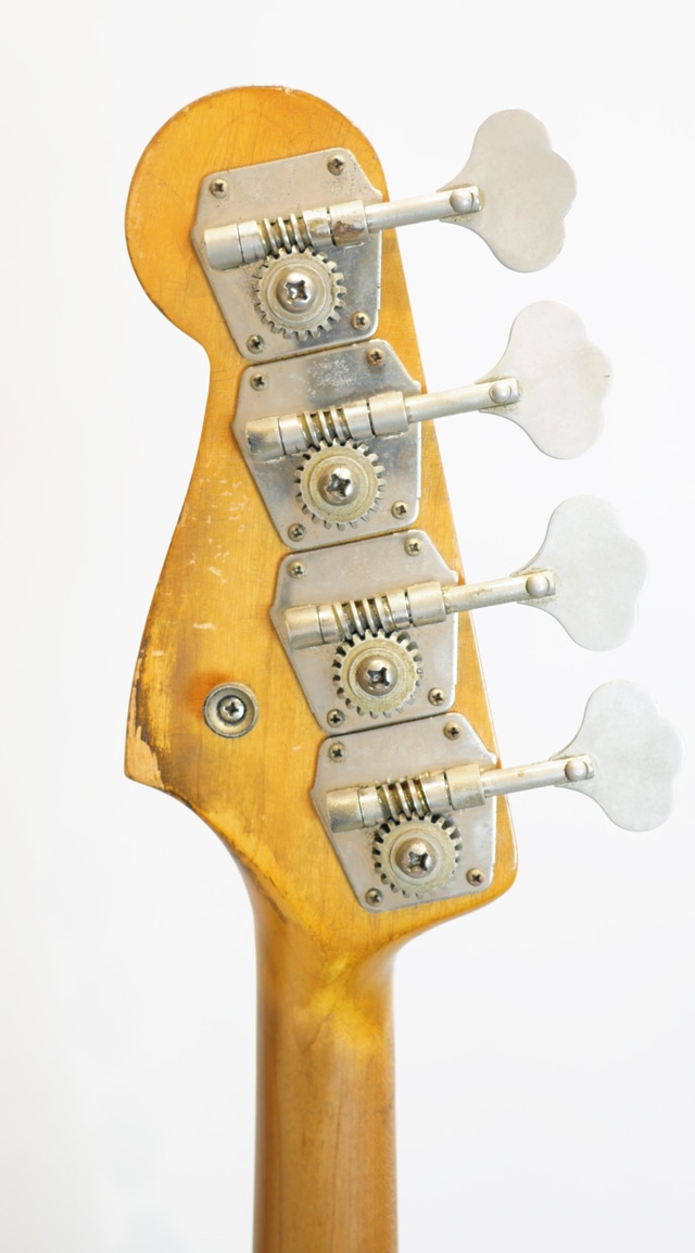 アルダーボディ、メイプルネック/ローズ指板。グレイボビンにフォームバーコイルが巻かれた65年に近いスペックのピックアップを搭載。総重量約4.2kgと標準程度のウェイトをキープ。弾き込まれた雰囲気の良い個体、交換パーツも無くオリジナル性の高い個体です。元よりビンテージタイプのフレットの為背が低く、残量は5割程度と言った所です。トラスロッド残量はございますので、現状のプレイコンディションは良好です。