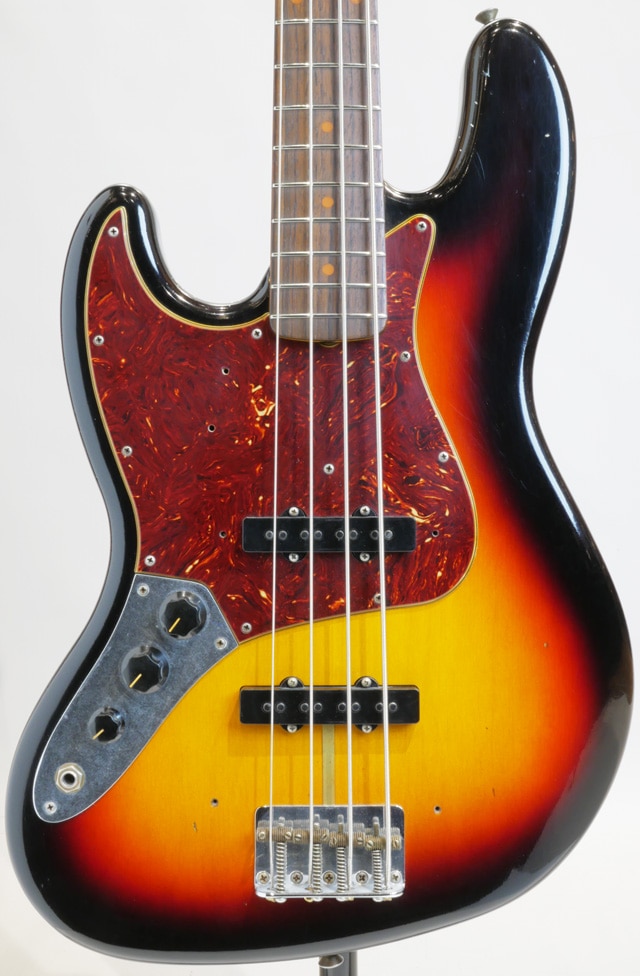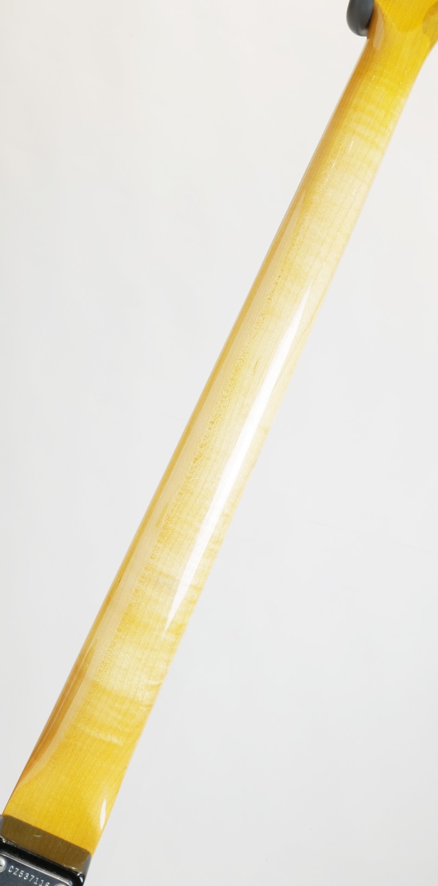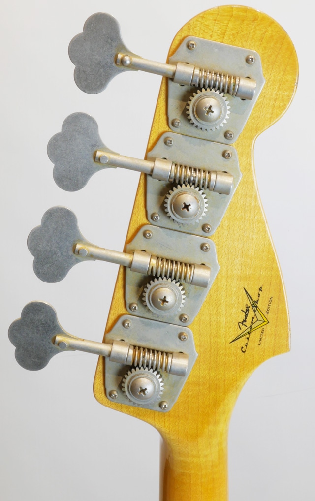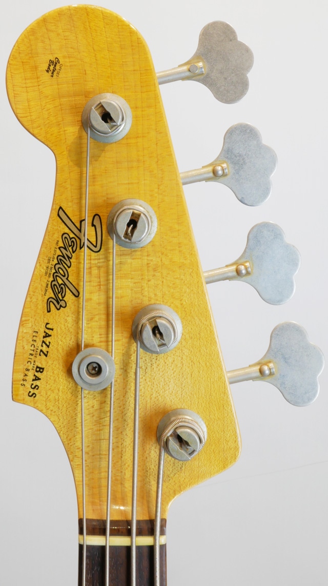 アルダーボディ、クォーターソーンにて木取りされたメイプルネック/ローズ指板(ラウンド貼り)。H/W VINT J-BASSピックアップをセットにて搭載。トラベラーシートを確認しますと、基本スペックは標準通りで、デカールがリミテッド仕様の様です。ジャーニーマンレリックが施されている為後から付いたと思われる外傷は分かり兼ねますが、雰囲気を損なう外傷はありません。ネックコンディションは良好状態をキープ。フレットの減りは殆どありません。トラスロッド残量もありプレイコンディションも良好です。