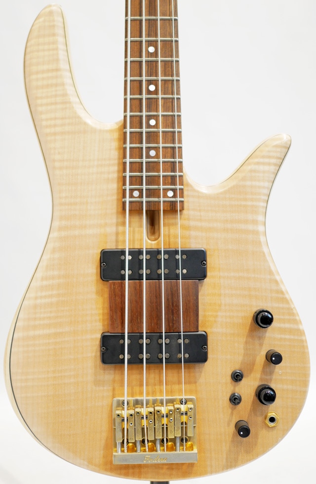 フレイムメイプルトップ&アッシュバックのラミネイトボディ。ボルトオン構造の3pcメイプルネック/ローズ指板。ヘッドはフラットヘッドになります。Duncan Custom DCピックアップ&Foderaプリアンプを搭載。キズや打痕等は点在致しますが、全体的にまずまずのコンディションです。ネックコンディションも良好で、フレットの減りは殆どありません。トラスロッド残量もありプレイコンディションも良好です。