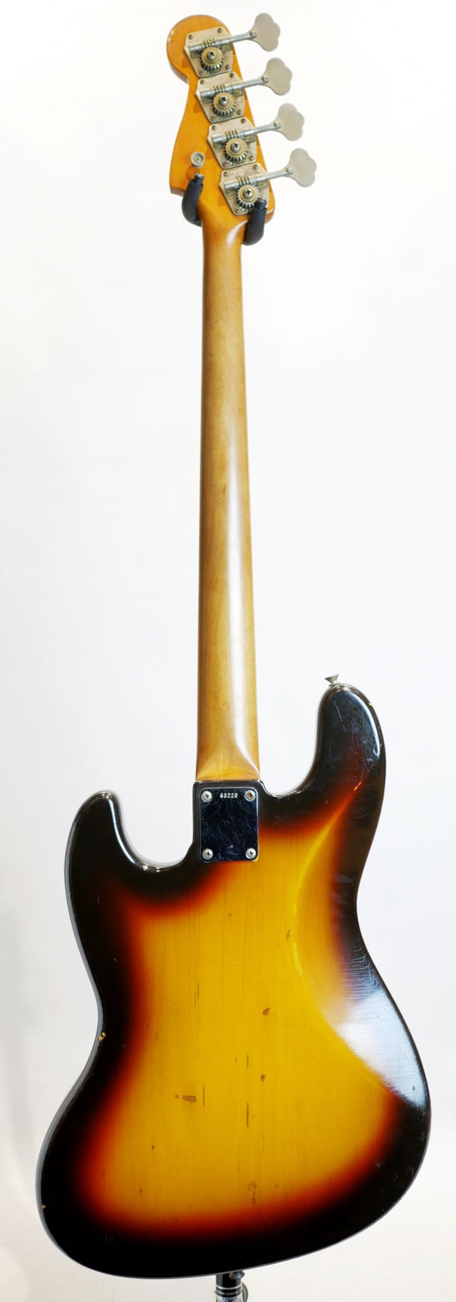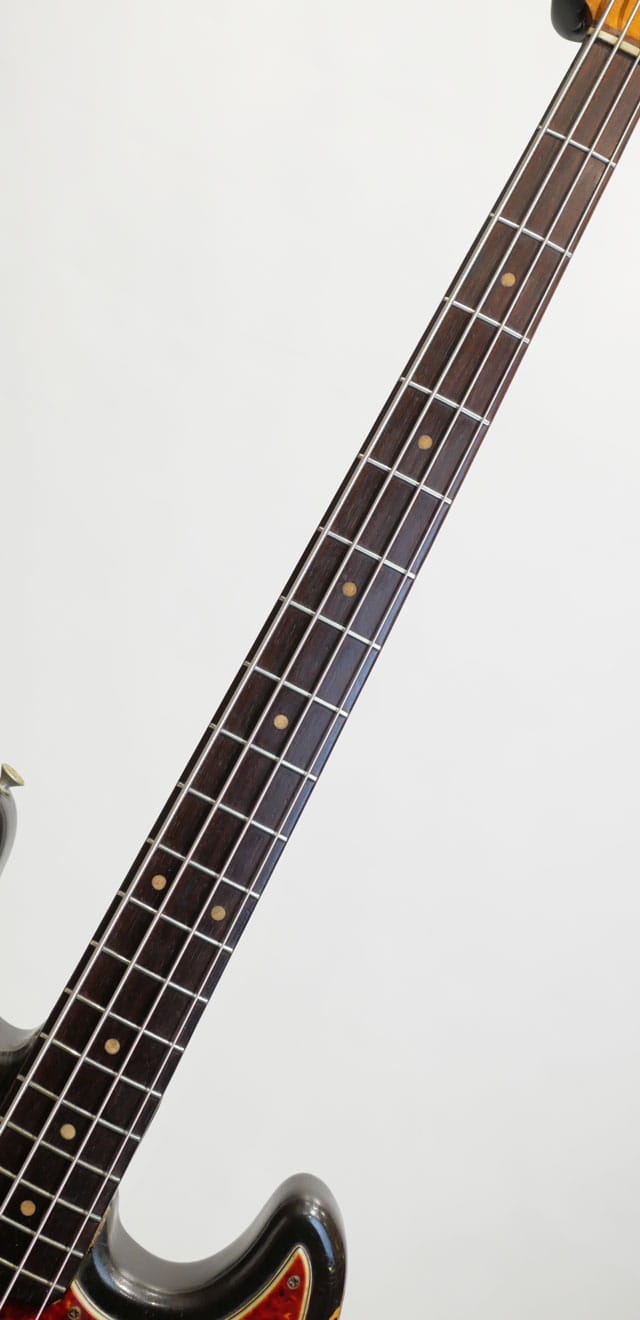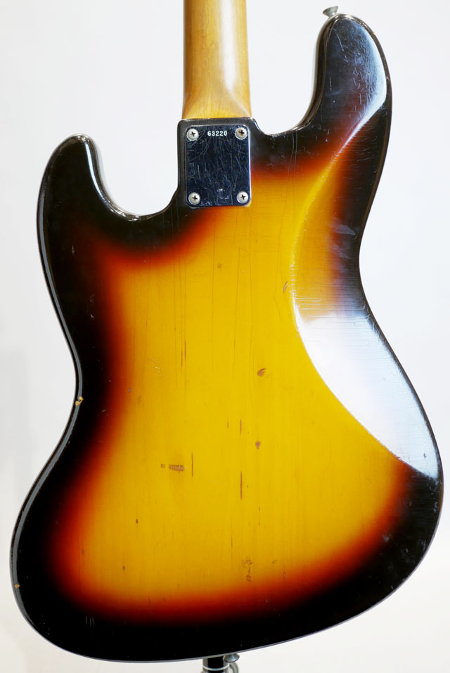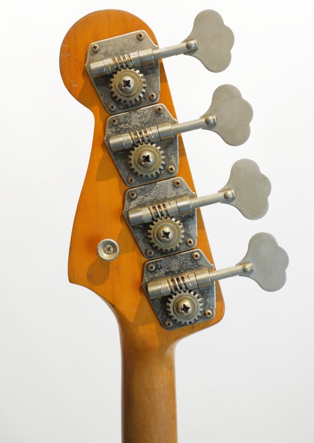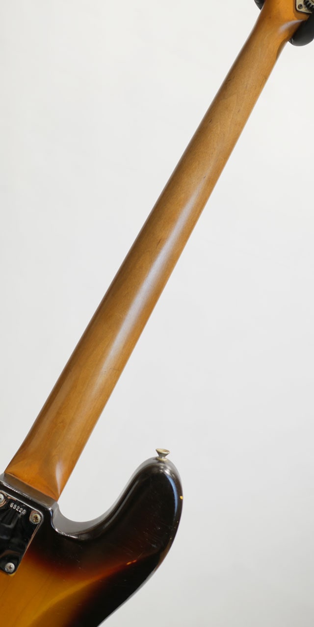 シリアルは1961年。ネックデイトは1964年。ボディにはPreCBS期の個体に見受けられるネイルホール(治具穴)が見受けられますので1964年までに製造されたボディと判断。ポットデイトは1966年に統一。ピックアップはグレイボビンとフォームバーコイルの組み合わせになりますが、1964年中期以降からこの組み合わせのピックアップにシフト致しますのでスペック的な相違点はございませんが、ピックアップは1966年と判断致しております。その理由として、ポットとピックアップのハンダが全てバージンになります。リアピックアップの配線が入荷時外れておりました為、ハンダ付けを行いましたが入荷時はバージンの状態でございました。交換パーツは無く、消耗品のナット、フレット、ジャックもオリジナルをキープ致しております。ベースとしてのコンディションは良好で、ネックコンディションも良好状態をキープ。フレットはやや低い状態ですが、トラスロッド残量もありプレイコンディションも良好です。