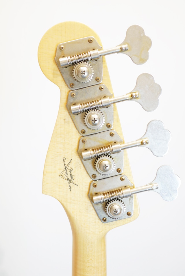 アルダーボディ、張りメイプル指板/メイプルネックのマニアックなスペックに、HW VINT J-BASSピックアップをセットで搭載。指板ラディアスは7.25R、ミディアムジャンボフレットをセレクトしたヴィンテージライクなスペックにて構成されております。貼りメイプル特有の独特のコンプレッション感を感じるサウンドの再現はお見事です。アルダー&メイプルの組み合わせでここまでボトムが出るかと感じさせてくれる芯の太さと艶やかさを持ったサウンドに、メイプル特有の明瞭感も加わり発音の良さも兼ね備えております。フェンダーベースで貼りメイプルを試したくとも出会える機会が少ない状況かと思います。