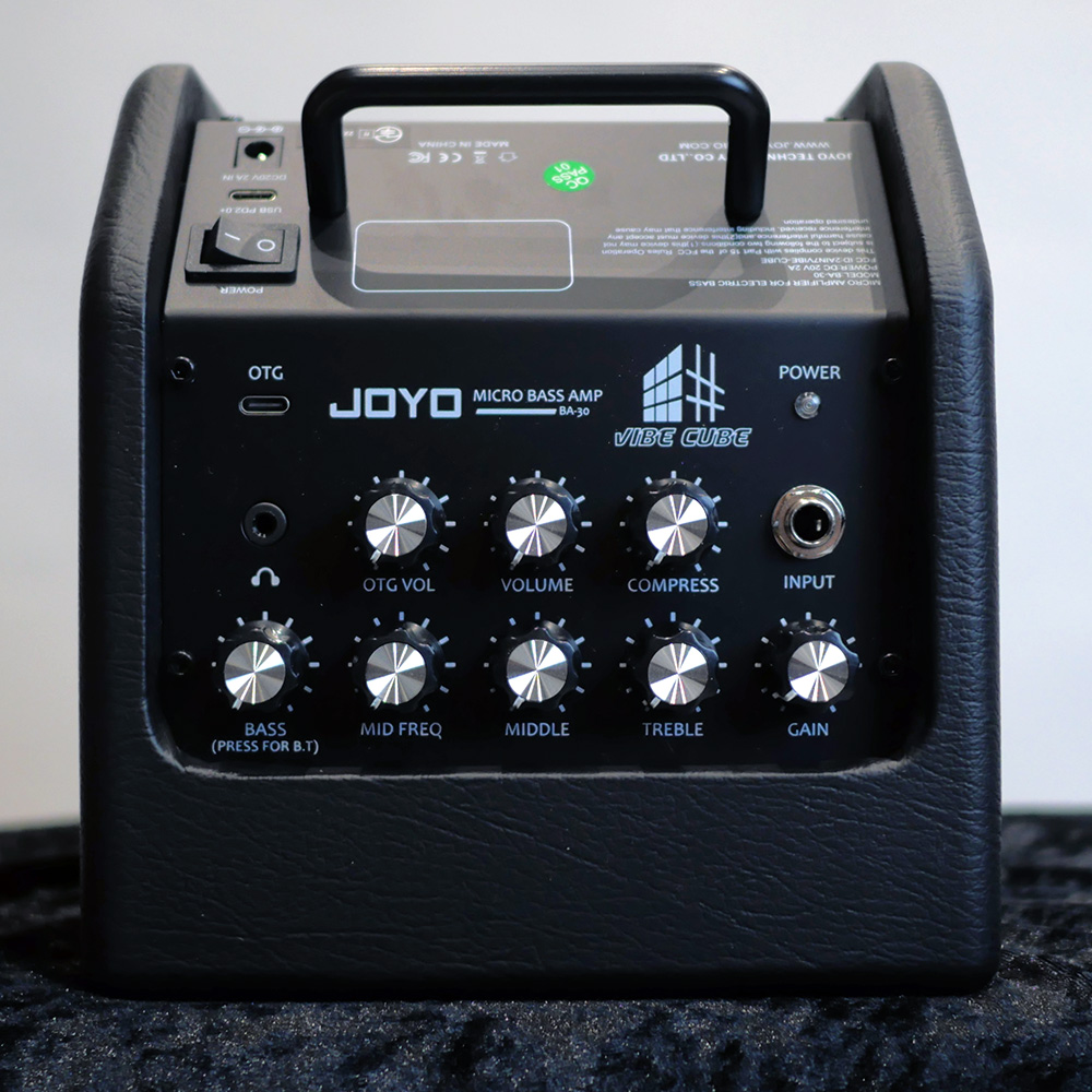BA-30 VIBE CUBE は、30W出力にコンプレッサー、Bluetooth 5.1再生、OTG対応オーディオインターフェースを搭載したコンパクトなベースアンプコンボです。約2.7kgの軽量設計で持ち運びしやすく、自宅練習から小規模リハーサル、宅録、配信まで1台で対応。タイトな低域とクリアな中高域で、ベースのニュアンスをしっかり出力します。