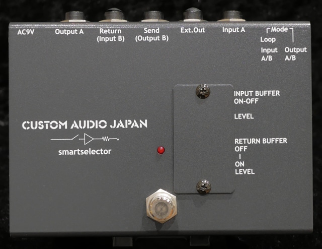 インプットとリターンにCAEバッファーを装備、Input A/Bモード時は接続された2本のギターのレベルバランスが、Loopモードではエフェクトのリターンレベルが調整できます。 また、Loopモード時にエフェクターを接続しない状態で最大8dBのブースターとして機能します。 ゲルマニウムやシリコントランジスターを使用したFUZZ等のエフェクターは、バッファーの後に接続した場合に本来の音質が損なわれる場合があります。