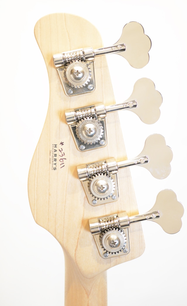 当機はアッシュボディ、メイプルネック&指板、”Darkglass”プリアンプにより構成されており、各音の分離感が良い国産ベースならではのモダンなJBサウンドがアウトプットされて参ります。テンションバランスが響きの良いサスティーンがしっかりと感じられ、テンポの良い奏法にもしっかりと追従してくれるレスポンスを持ち、ダークグラスプリアンプのクリアで力強い可変がしっかりとございますので幅広いトーンメイクとシチュエーションにマッチした活躍が期待出来る仕上がりとなっています。