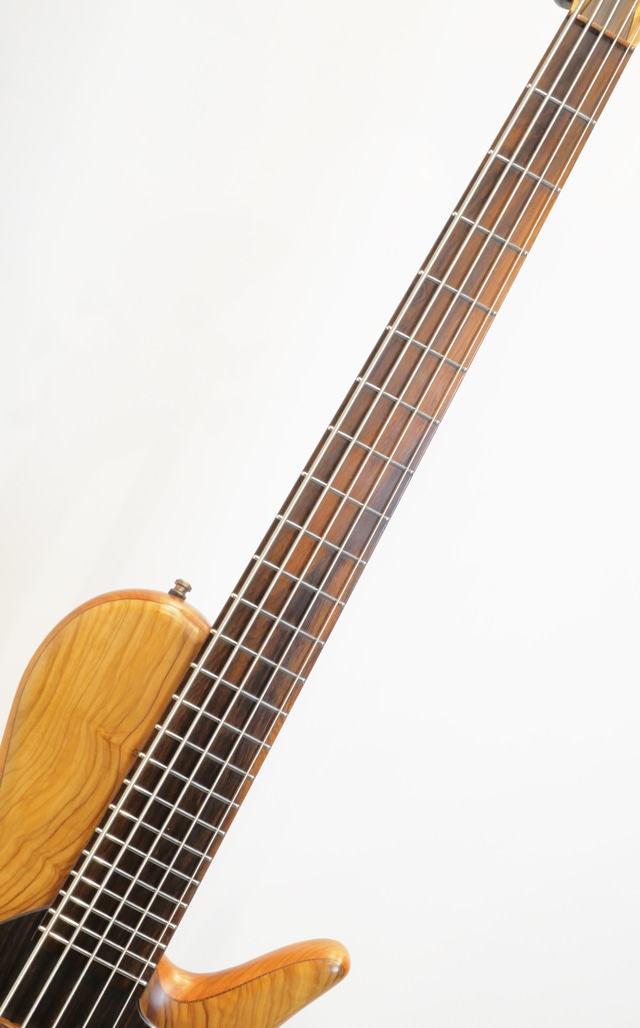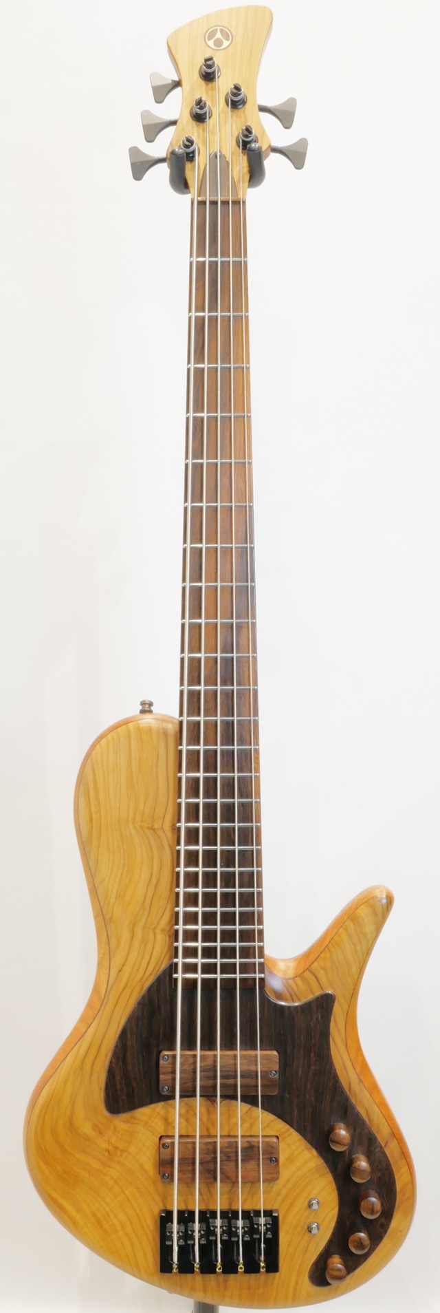 Olive Top & Beeswing Solomon padouk Backのラミネイトボディ。ネックはSolomon padouk、Padouk、Wengeから構成されたセットネック構造の5pcネック/Zolernia指板。Bassbarsピックアップ&Glockenklang 3bandプリアンプを搭載。キズや打痕が点在致しますが、大きく目立った外傷も少なく綺麗なコンディションをキープした個体。ネックコンディションも良好で、フレットの減りも然程ありません。トラスロッド残量もありプレイコンディションも良好です。