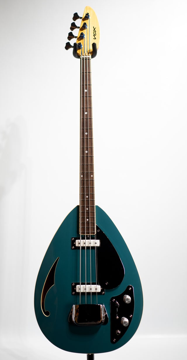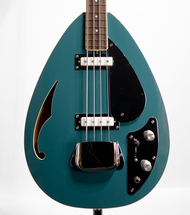 VOXを代表するモデルのWyman Bassのリイシューモデルにあたる当機は日本国内の工場で生産されたモデルになります。メイプルトップ&マホガニーバックのホロウボディ。ボルトオン構造のメイプルネック/ローズ指板。オリジナルシングルピックアップを搭載。ティアドロップ型の独特なボディが印象的なモデルになります。