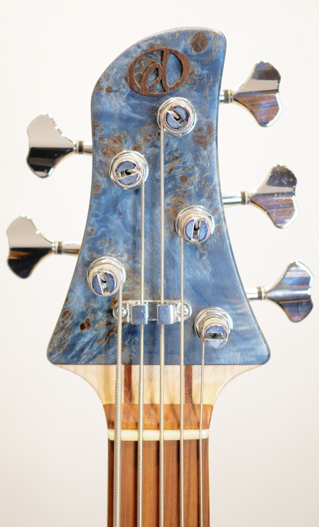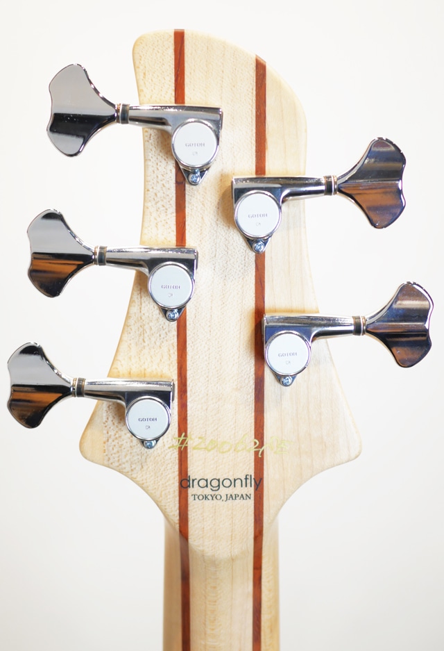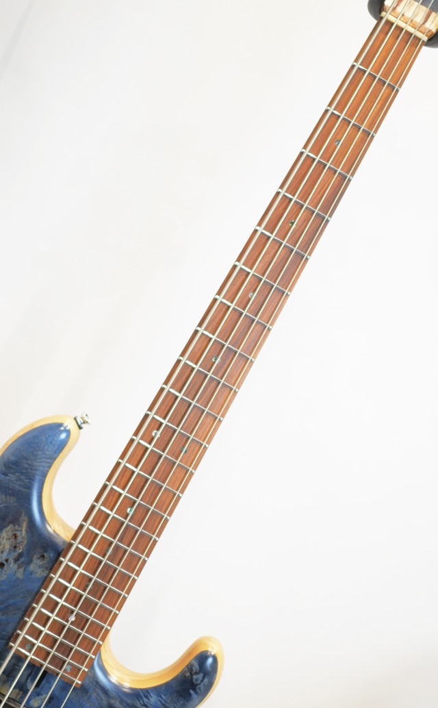 CSモデルの基本仕様にトップ材とカラーがチョイスされたカスタムスペックになります。本機は、5弦仕様の34.5インチスケール、ポプラバールトップ&ライトアッシュバックボディ、メイプル&ウォルナット5Pcネック、パーフェロー指板、オリジナルピックアップ、オリジナルアクティブサーキット、GOTOHパーツが主な構成になります。