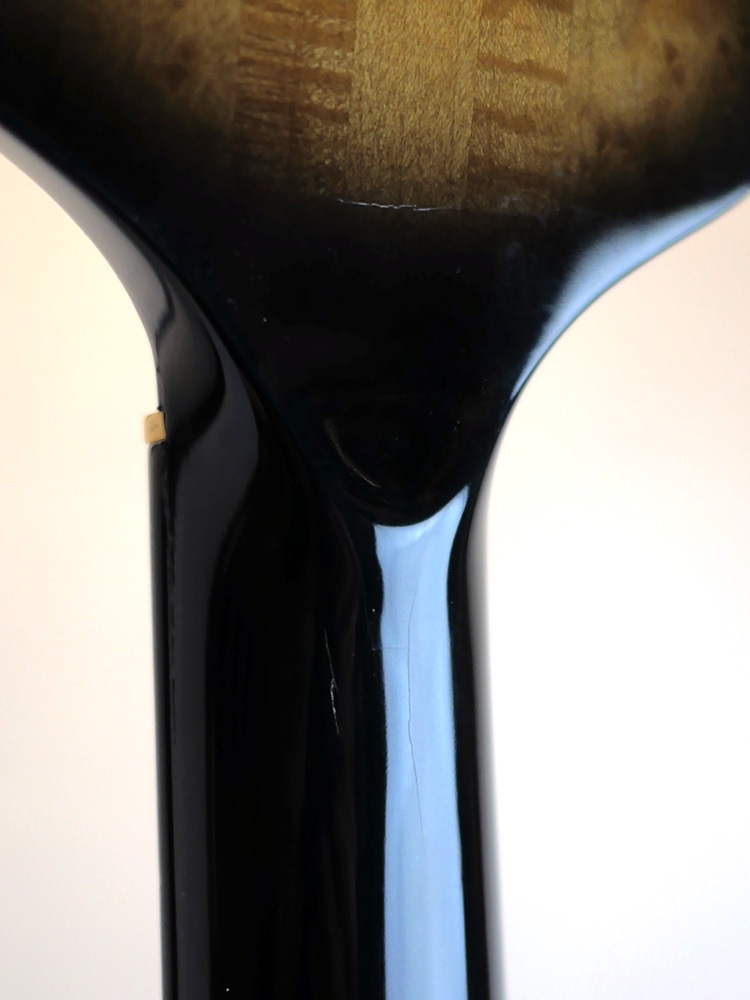 パーツのメッキ剥がれに始まり、ボディに数カ所打痕とバックル傷、ヘッド部のナット付近に経年劣化による塗装割れなど使用感はございますが、木部へのダメージはございませんのでご安心ください。年代を考慮すると比較的綺麗なコンディションではあるかと存じます。