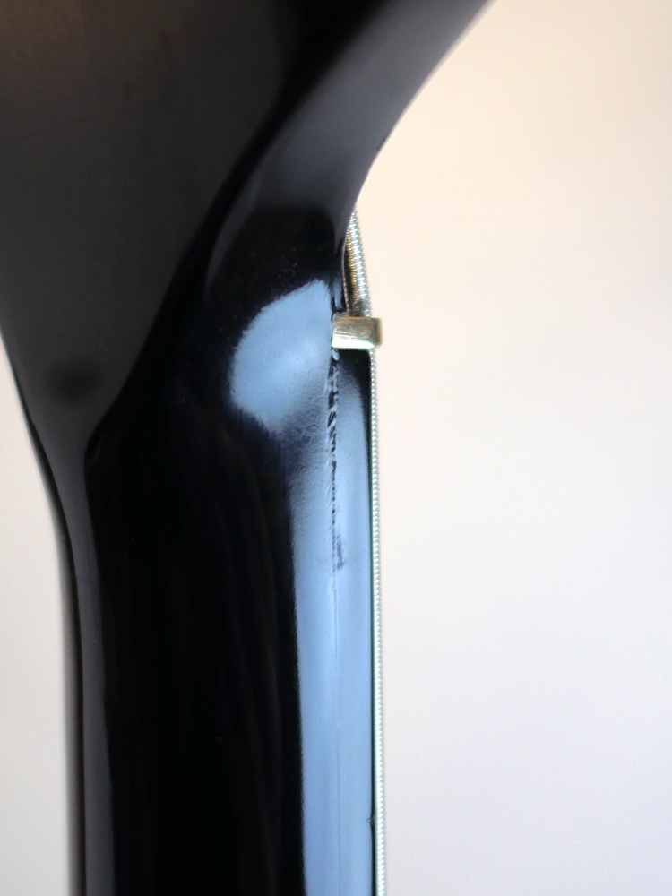 トラスロッドは現在ノーマルポジションで仕込んであり、締め幅の余裕も十分に残しております。フレットはおよそ残量6割程度と少し減っており、弦高を極端に下げることは難しいですが、擦り合わせをする余力は残しております。現在12フレット上で1弦約2.0mm、4弦約2.5mmにてセットアップしております。