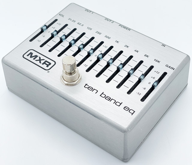 MXR定番であり人気機種、10バンド・グラフィックイコライザー、M-108のコントロールを継承しつつ、ノイズリダクション回路を追加し、更にトゥルーバイパス化。加えて出力を2系統として多彩に使用出来るようアップグレードし軽いアルミニウム筐体に収めた製品です。