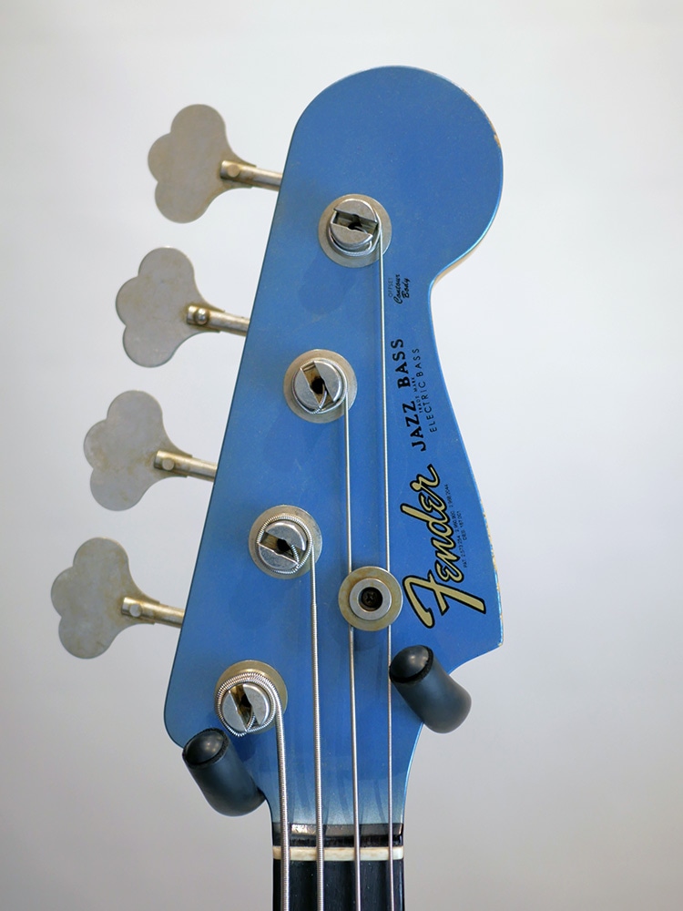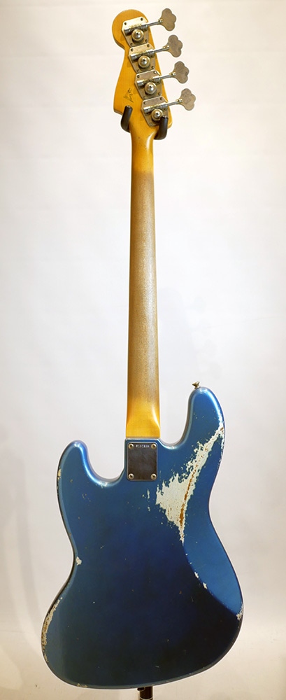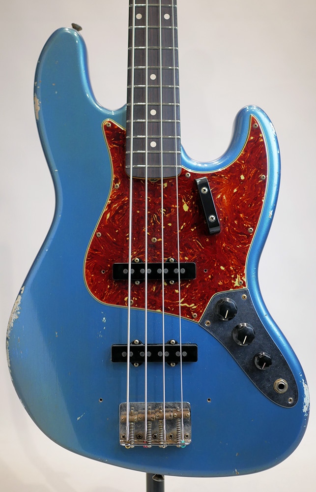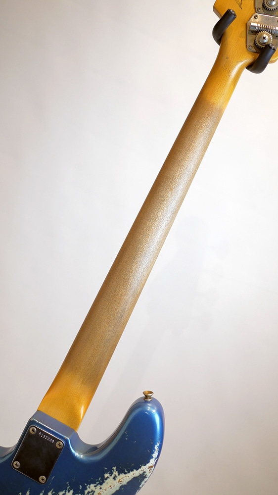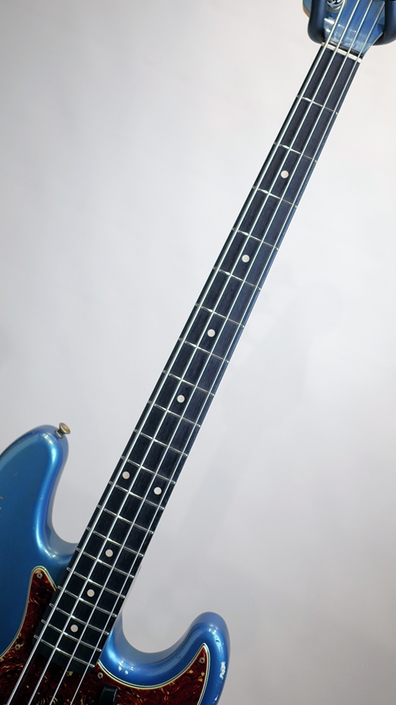 今回入荷したのはマッチングヘッドのLake Pracid BlueをHeavy Agedにて仕上げた63 Jazz Bass。アルダーボディ、ラウンド貼りのローズウッド指板、柾目のメイプルネックといった63年製のジャズベースと同様の仕様が採用されているからこそ、よりToddの楽器の特別さが感じられる1本です。当機はJosefina Campos氏がハンドワウンドにて製作したピックアップを搭載。巻数を多めに設定してあり、直流抵抗値8.0K~9.0Kと通常よりも高出力仕様となっています。
