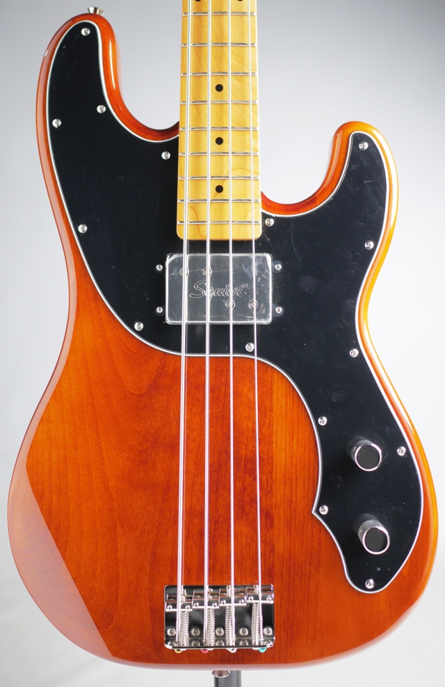 新たにラインナップしたテレキャスターベース。ポプラボディ、メイプルネック/メイプル指板。スクワイヤーオリジナルのオリジナルのハムバッカーピックアップをフロントポジションにマウント。クセ無く柔らかいトーンが印象的なポプラの特性とピックアップの相性も良く、テレキャスターベース特有の太くウォームなサウンドをアウトプット致します。スクワイヤープライスでこのサウンドであれば、コストパフォーマンスも高いかと思います。