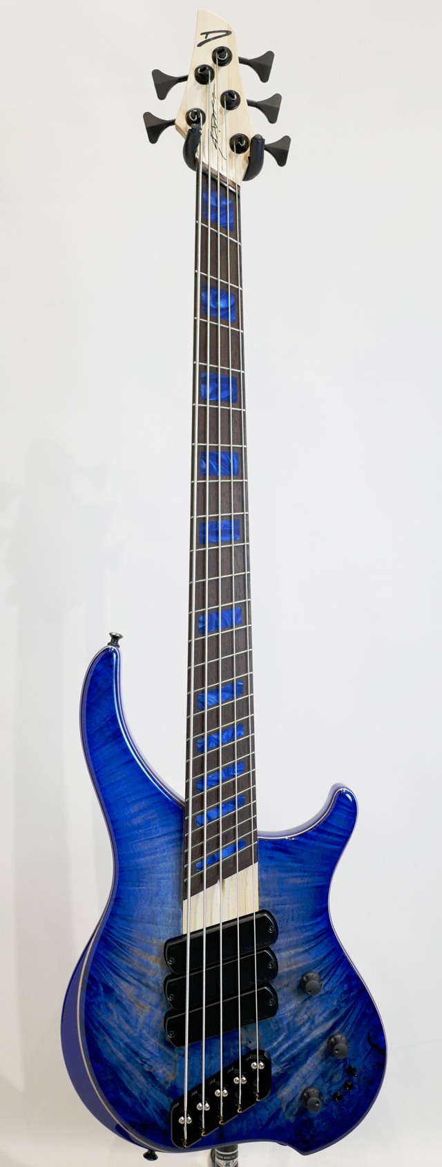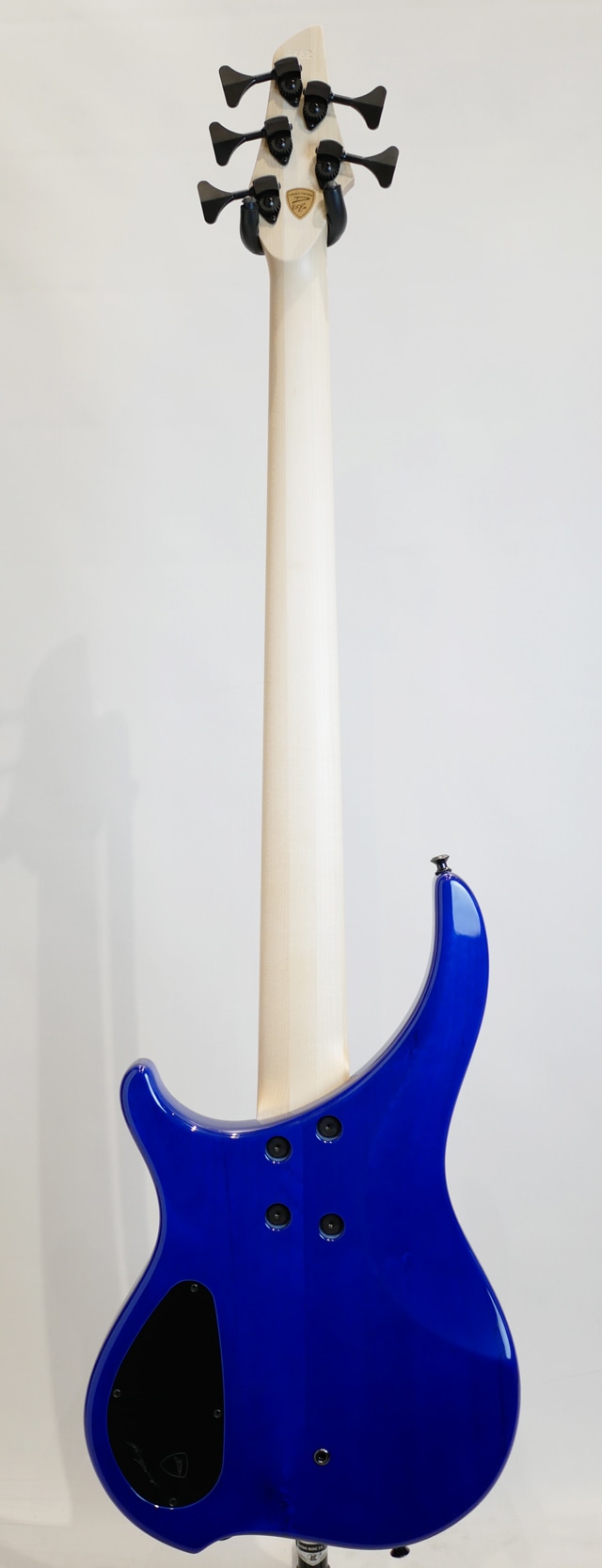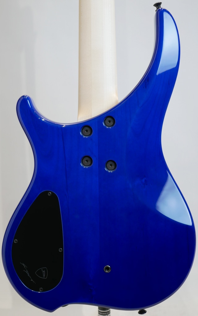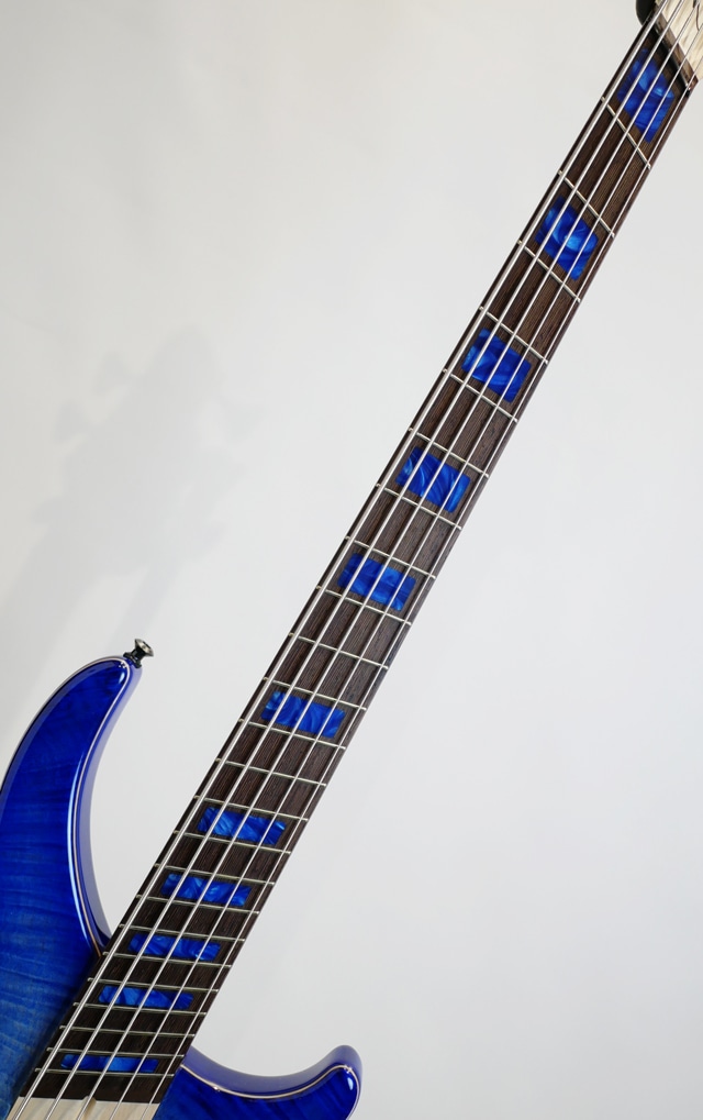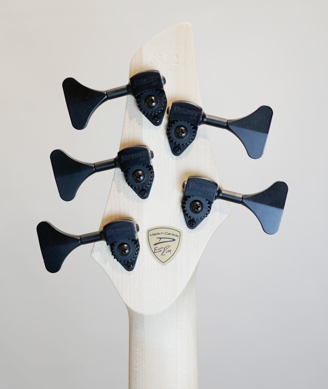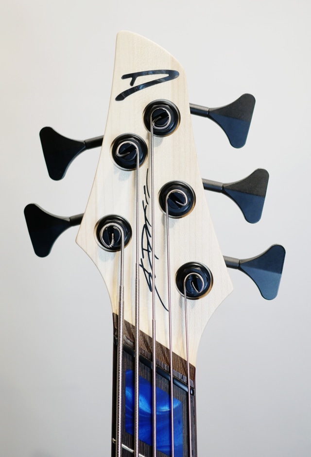 5弦モデルになりますので、ファンドフレットシステムはG弦で34”、LowB弦で37”となります。アルダー&メイプルの粘り強く芯の通った中低音にウェンジ指板がクリアでソリッドな中高域を演出、音の輪郭に明瞭さがありながらも刺々した印象は無く、パッシブ仕様とは思えないアクティブピックアップの様に整った音色は緻密に構築された楽器デザインとクオリティが生み出されていると確信出来る伸びやかで鮮やかなトーンを持っております。