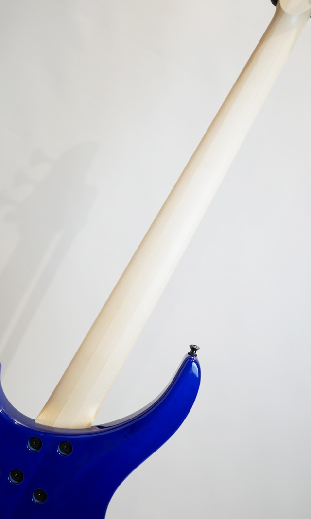ブロックポジションマークはボディカラーとマッチしたブルーパーロイドになっており楽器全体に引き締まった印象を与えています。