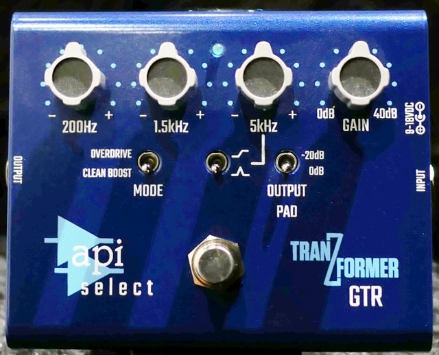 TranZformer GTRは、api独自のEQとブースト(プリアンプ)回路を、コンパクトなエフェクター・サイズで実現しました。ペダル・ボードに収まるサイズと、標準的な9V(~18V)電源で動作するように設計されています。