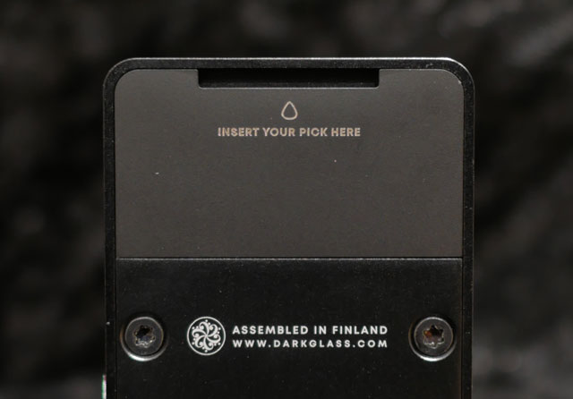 2つのつまみでとてもシンプルですが、背面パネルの1部がマグネット式となっており、ピックなどを使って簡単にパネル部分を取り外しが可能となっており、取り外すとトリムポットで調整できる「TONE」 と「BLEND」に、DIP スイッチで低音をブーストできる「GRUNT」のON / OFF と300Hz~1kHzまでの中低音域をブーストする「MBOOST」のON / OFFが搭載されており、サウンドメイクの幅が広げられる機能も沢山搭載しております。
