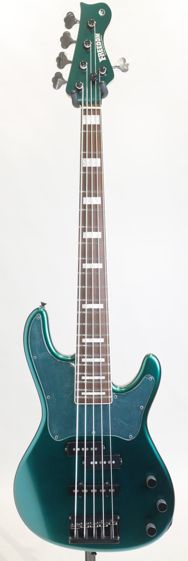 基本スペックはトラディショナルに沿ったパッシブモデルになります。アルダーボディに、4点留めボルトオン構造"FCGR U"グリップのメイプルネック/インディアンローズ指板。指板にはバインディング&ブロックポジションマークの装飾を施しております。ピックアップはフリーダムオリジナルピックアップPB&フリーダムオリジナルJBピックアップから構成されたPJレイアウトになります。総重量は約4.23kgと、5弦モデルである事を考慮すれば軽量なウェイトです。