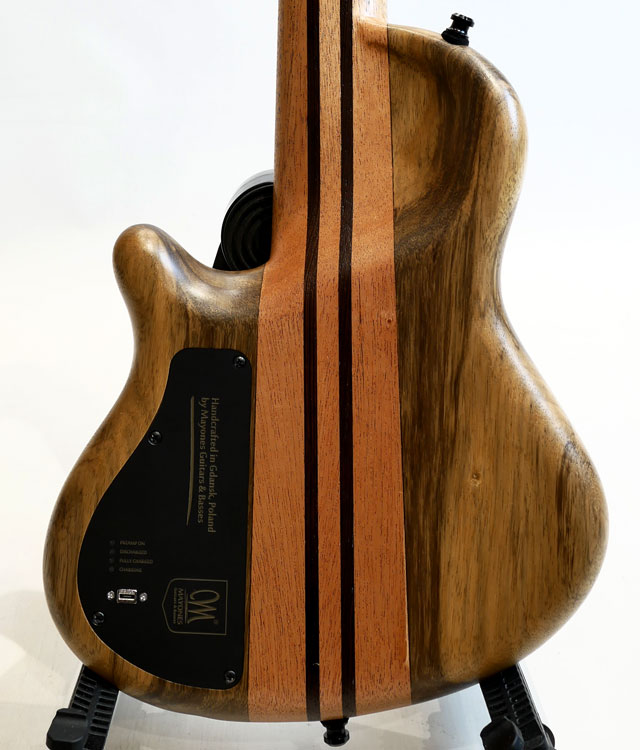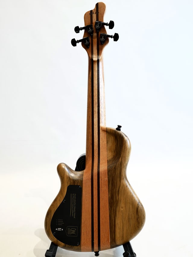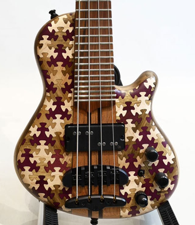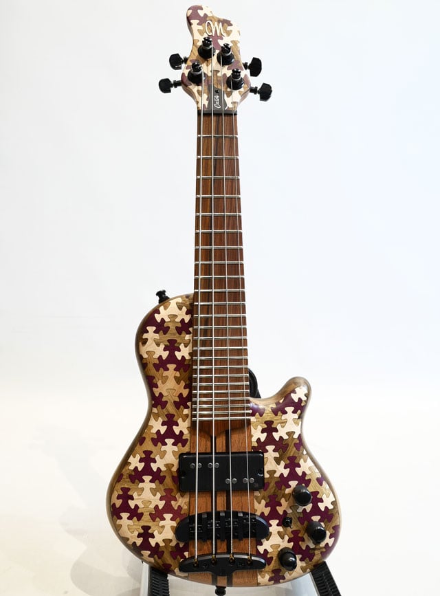 17.1インチスケールの超本格的ミニベースCali4。ピックアップにMayonesオリジナルピックアップを搭載。小振りですがボトムのしっかしたサウンドをアウトプット致します。ミニベースだからと妥協しないメーカーの本気が伝わって来ます。パズルの様なデザインで構成されており、様々なも木材を組み合わせております。ネックはマホガニー&ウェンジから構成されており、低音の再生能力+剛性を高めた仕様になります。指板はパーフェローをセレクト。充電式のヘッドフォンアンプを装備しており、トラベルベースとしても高いポテンシャルを持ち合わせております。直接ヘッドフォンをジャックイン出来るのもこのモデルの特徴であり魅力の一つだと思います。