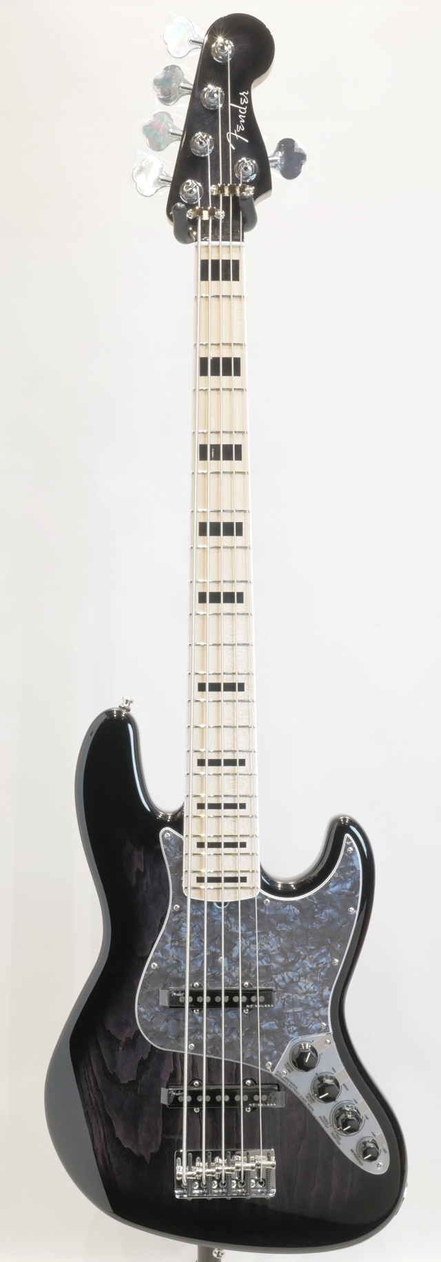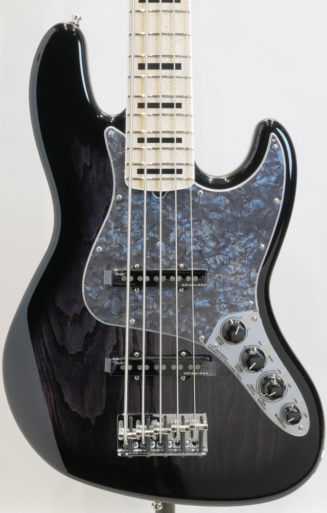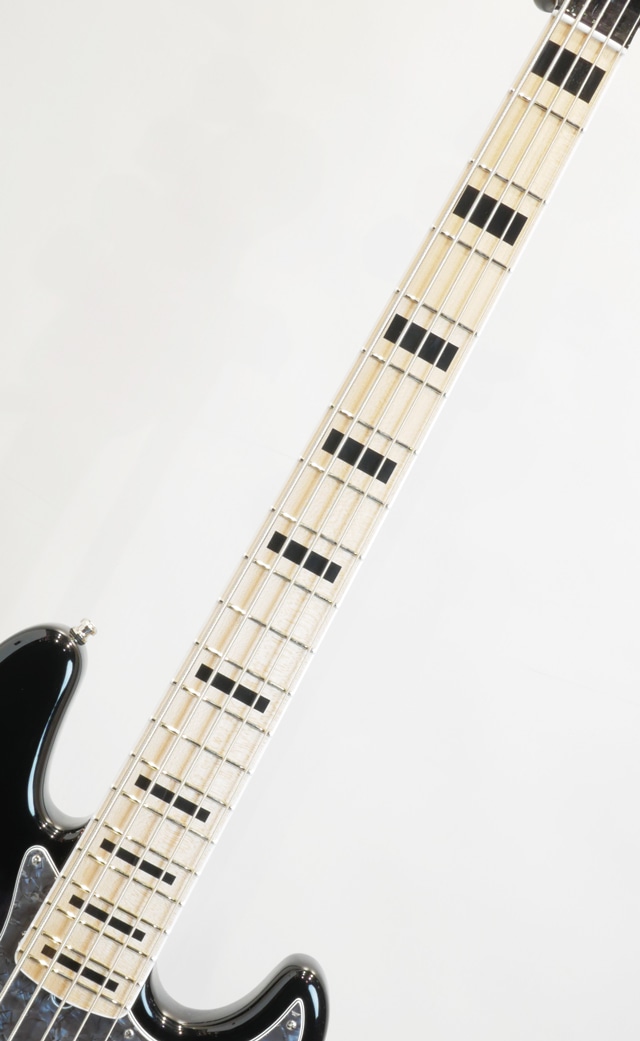 アッシュボディ、メイプルネック/メイプル指板にバインディング&ブロックポジションマークの装飾を施しております。ノイズレスピックアップ&オリジナルプリアンプを搭載。総重量約4.3kgと5弦モデルとしては軽量なウェイトをキープした個体になります。