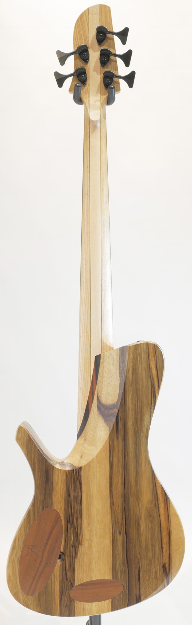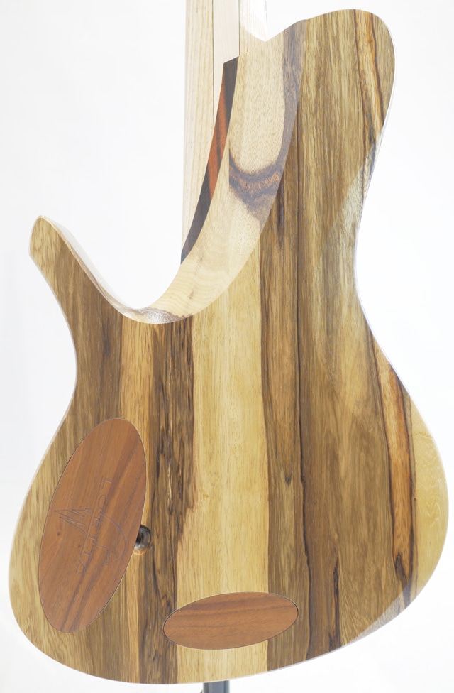 プリアンプの後付けも想定してコントロールキャビティはアクティブ仕様の個体同様の広さを確保しております。またバッテリー用のキャビティもボディバックに用意しております。