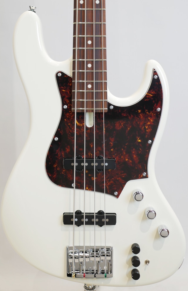 アルダーボディ、メイプルネック&パーフェロー指板、オリジナルプリアンプにより構成されており、各音の分離感がよく中低域の引き締まったモダンなJBサウンドがアウトプットされて参ります。フラットな指板面、ローアクションのセットアップにより演奏時のストレスを軽減していながらもテンションバランスが良く、テンポの良い奏法にもしっかりと追従してくれるレスポンスを持っており、プリアンプの可変幅もしっかりとございますので幅広いトーンメイクとシチュエーションにマッチした活躍が期待出来る仕上がりとなっています。