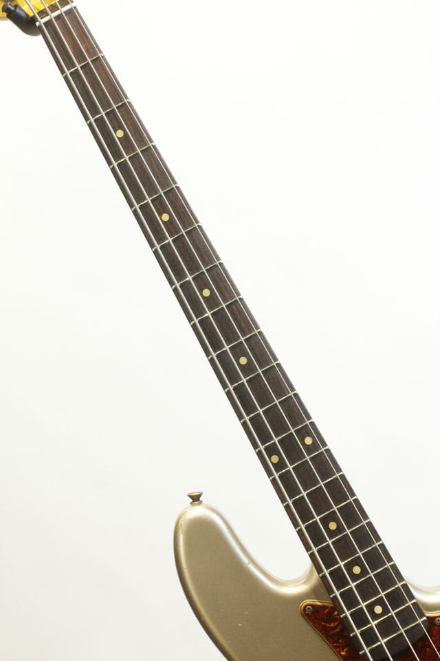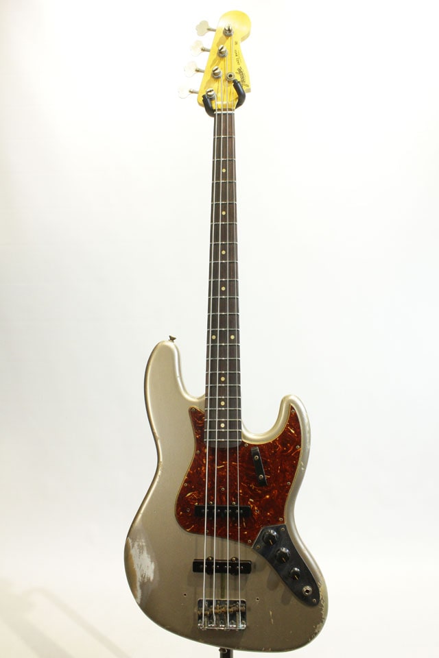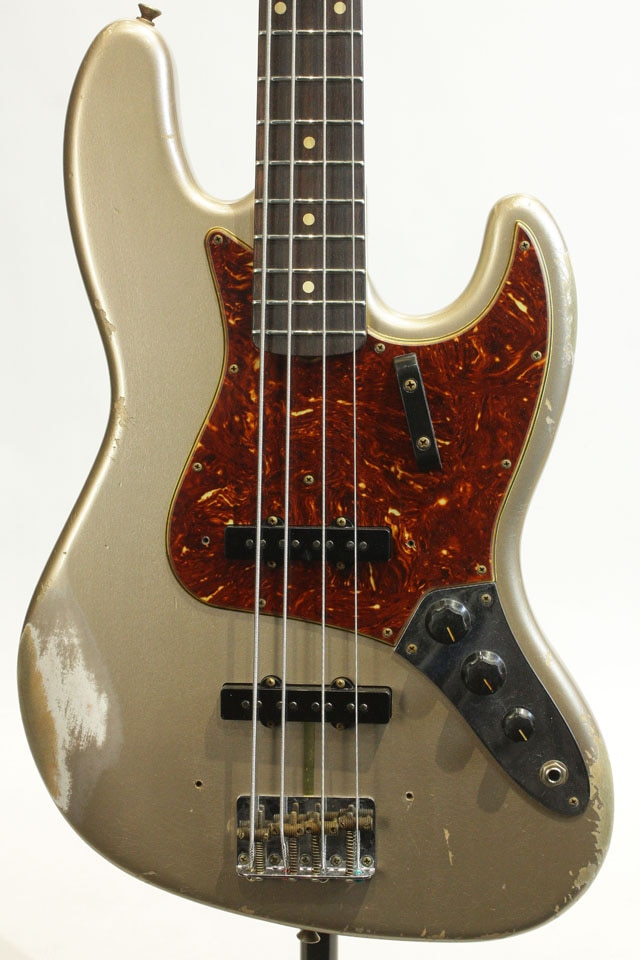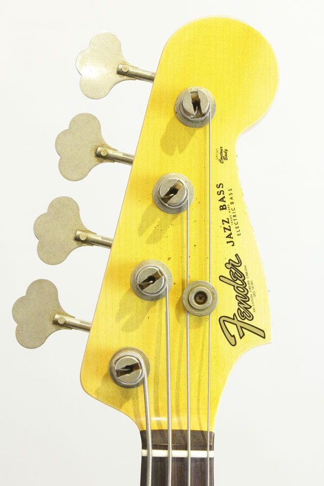 アルダーボディ、メイプルネック/ローズ指板(スラブ貼り)。ハウンドワウンドで制作されたVINT J-BASSピックアップを搭載。総重量はフェンス類を含め約4.3kgと標準的ウェイトをキープした個体、ヘビーレリックが良い雰囲気を演出しております。2021 Custom Collection 1961 JAZZ BASSはどの個体も基本的にボトムレンジが太く、パワフルなサウンドをアウトプットする印象ですが、こちらの個体はミドルの帯域が強く出ている印象の個体です。ピッキングの強弱にブレる事無く芯の通ったサウンドを響かせてくれます。また、中音域を軸にワイドレンジに構成されたバランスの良さが印象的です。また指板ラディアスは9.5、フレットはミディアムジャンボとプレイアビリティを考慮している点からも想像できる通り、プレイアイビリティの高さもこのモデルの特徴と言えます。