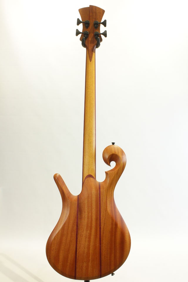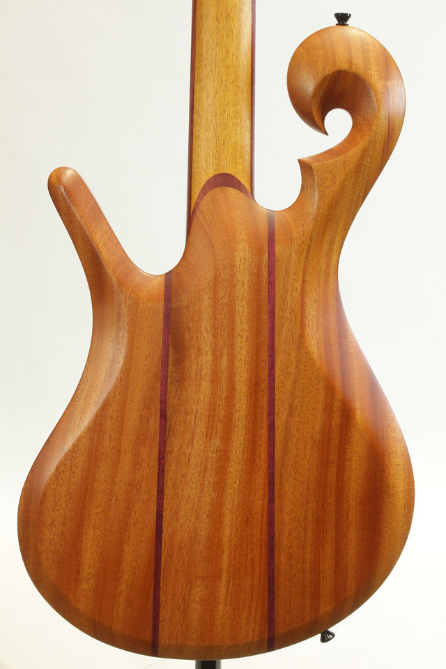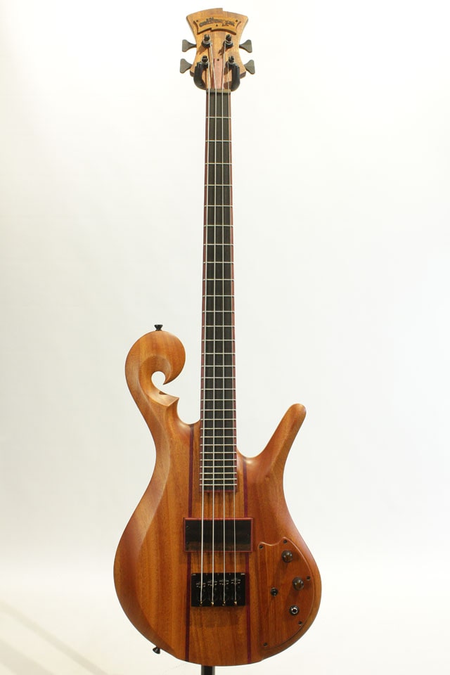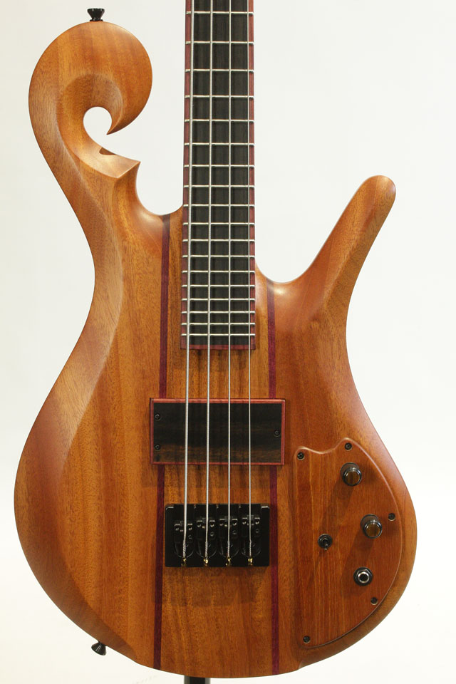 この度入荷したモデルは32インチスケールのフレッテッドモデル。マホガニーボディ、セットネック構造のマホガニーネック/エボニー指板。デュアルコイルピックアップを1発のみ搭載したモデル。パープルハートを装飾として至る所に使用しております。シンプルなスペックですが、ピックアップとリンクしたコントロールのトーンシフトSWにより、ウッディなトーンからデュアルコイルらしい芯の太いサウンドまでアウトプット致します。