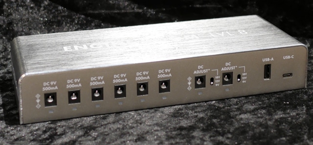 8つの独立した電源はそれぞれ500mA/9Vで、3ウェイトグルスイッチを使って9v / 12v / 18vへの切り替えも可能な2基のDC ADJUSTポートも備え、ライブパフォーマンスでもスタジオで活躍!