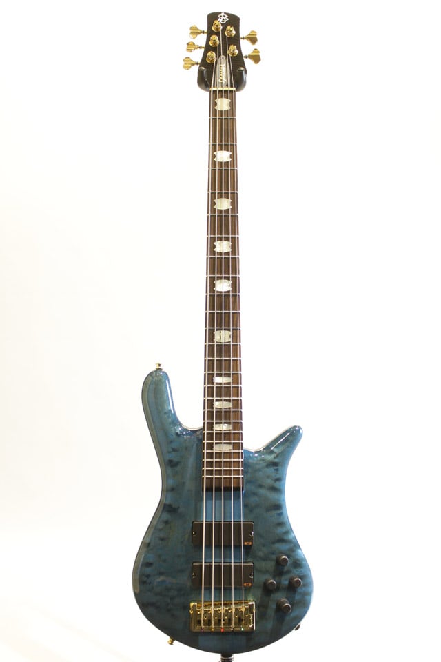 フィギアードメイプルトップ、アルダーバックのラミネイトウィングボディ。スルー構造のメイプル3pcネック/ローズ指板。EMGピックアップと、プリアンプにダークグラス"トーンカプセル"プリアンプを標準搭載したモデル。スペクタープリアンプの2band-EQに対して、3band-EQ仕様ですので、サウンドバリエーションの幅が広がっております。EMGのサウンドキャラクターとダークグラスのキャラクターもマッチングが良く、スペクターらしい荒っぽく煌びやかに響く高音域や、重厚な低音域を違和感なくアウトプット致します。ミドルのコントロールによりサウンドキャラクターも多彩に変化致します。35インチ設計から得られるテンション感により、ローBの安定感も安定しております。