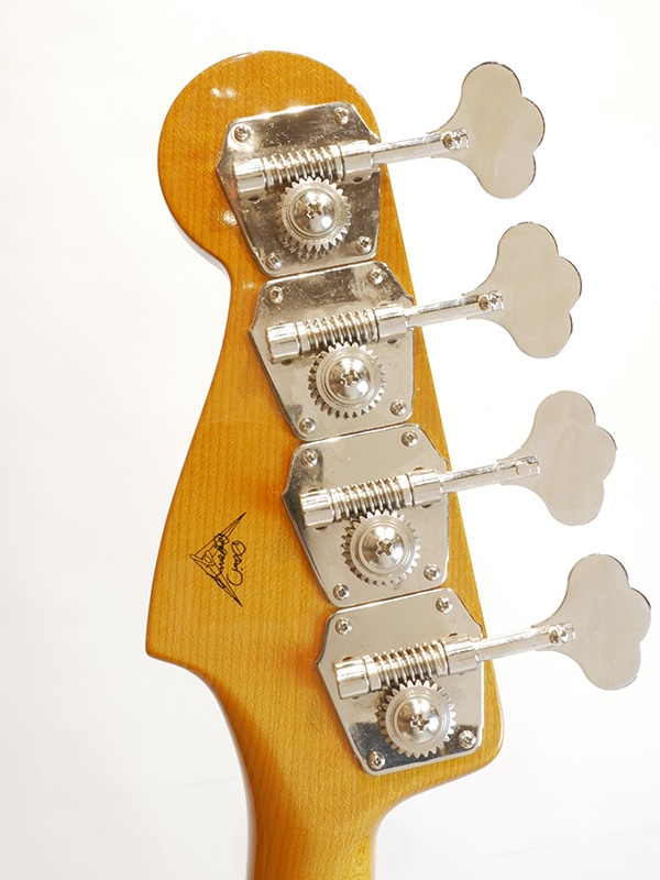 アルダーボディ、メイプルネック、ラウンド貼りのローズウッド指板と、1964年製のジャズベースに基づいた仕様をチョイスしていますが、ボディ・ネック共にローステッド加工を施しており、プレーンの木材よりも更にワイドレンジ且つリッチで深みのあるトーンを実現しています。ローステッド加工はネックにおいて湿度や気温の変化に強くなる安定性の向上もメリットとして挙げられており、コンディションの安定感にも期待できます。また、重量も少々軽量に仕上がり、鳴りも良くなるという利点もございます。