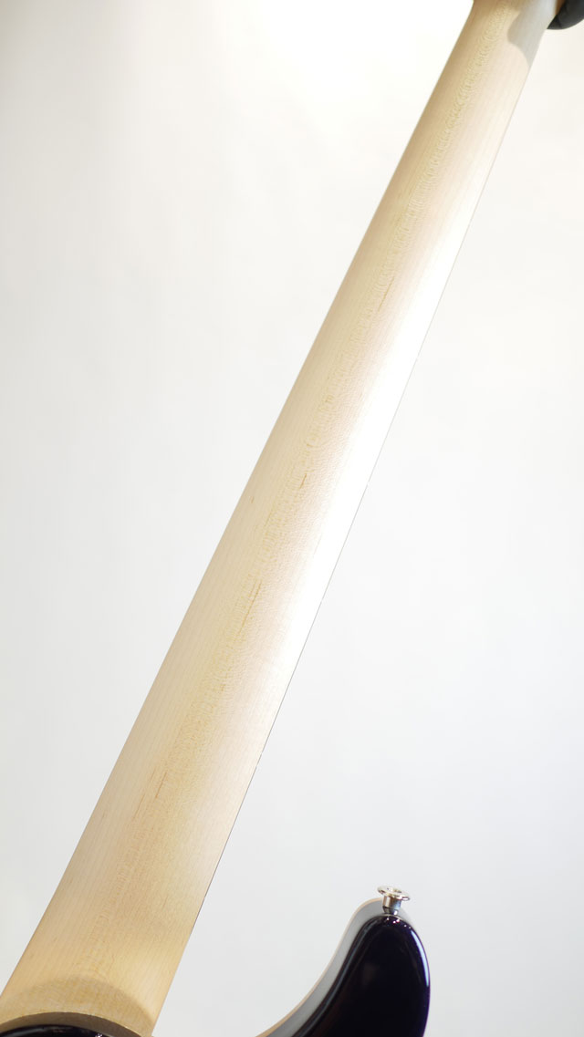 荒めの杢が入ったフィギアードメイプルをボディトップにセレクト、ボディバックはマホガニーを組み合わせております。ネックに使用されたメイプルは柾目を使用、指板はローズウッドになります。総重量約4.3kgと5弦モデルとしては軽量なウェイトをキープした個体です。