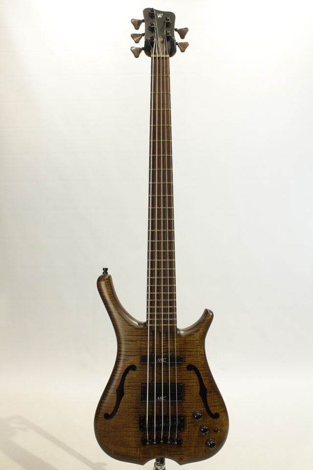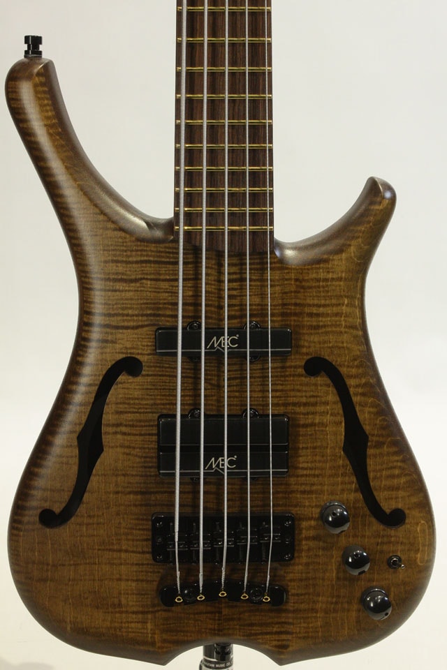 AAAAフレイムメイプルトップ&オバンコールバックのラミネイトウィングボディ、スルー構造の4pcメイプルネック/ローズ指板。MECピックアップをJ/JT配列にてマウント。同社MEC製プリアンプを搭載。総重量約4.3kgと軽量なウェイトをキープした個体。