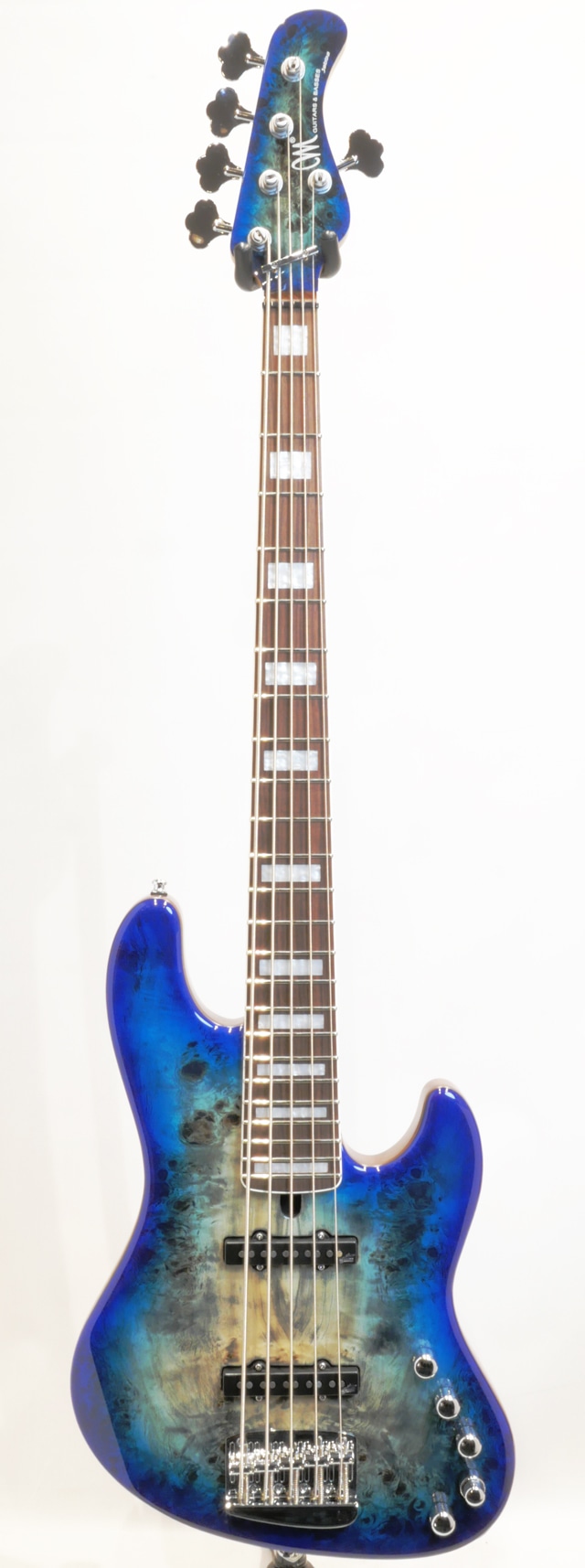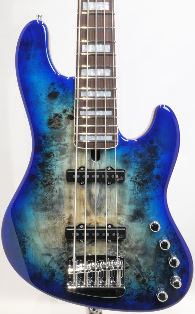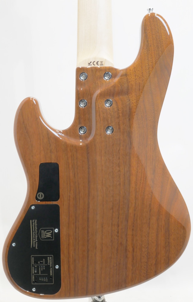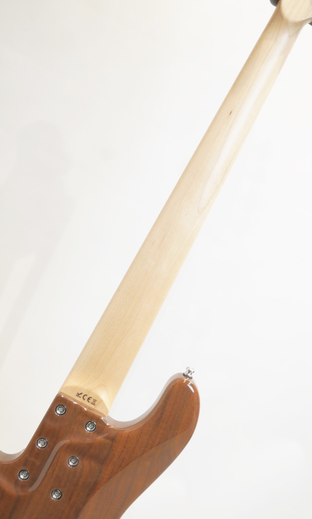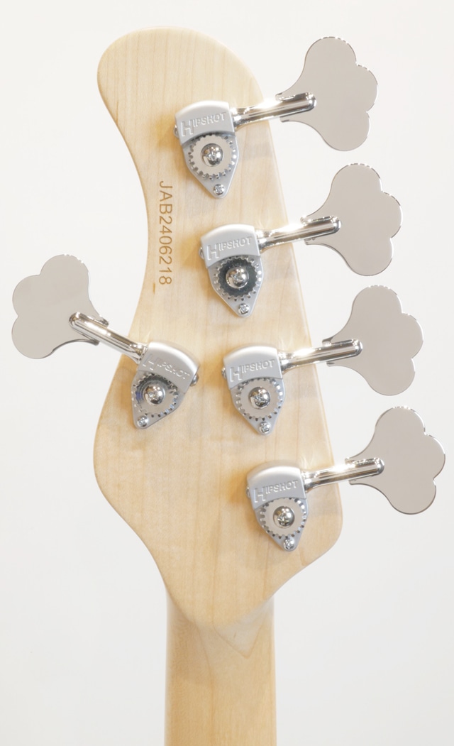 コチラのモデルはボディバックにウォルナットをセレクト、ボディトップに3AグレードのEye Poplarをチョイス。ウォルナット特有のタイトに引き締まった力強いローミッドボトムに高音域までバランスの良いサウンドをアウトプット致します。バスドラムにも負けない力強いサウンドは明瞭感もあり、バンドアンサンブルでも存在感を放ちます。搭載プリアンプとの相性も良く、3band-EQはスムーズに効いてくれますのでサウンドも自在に変化致します。アウトプットジャックの直ぐ横にAUX/PHONE端子を装備、アンプを通さずにヘッドフォンでも練習出来る利便性も兼ね備えております。
