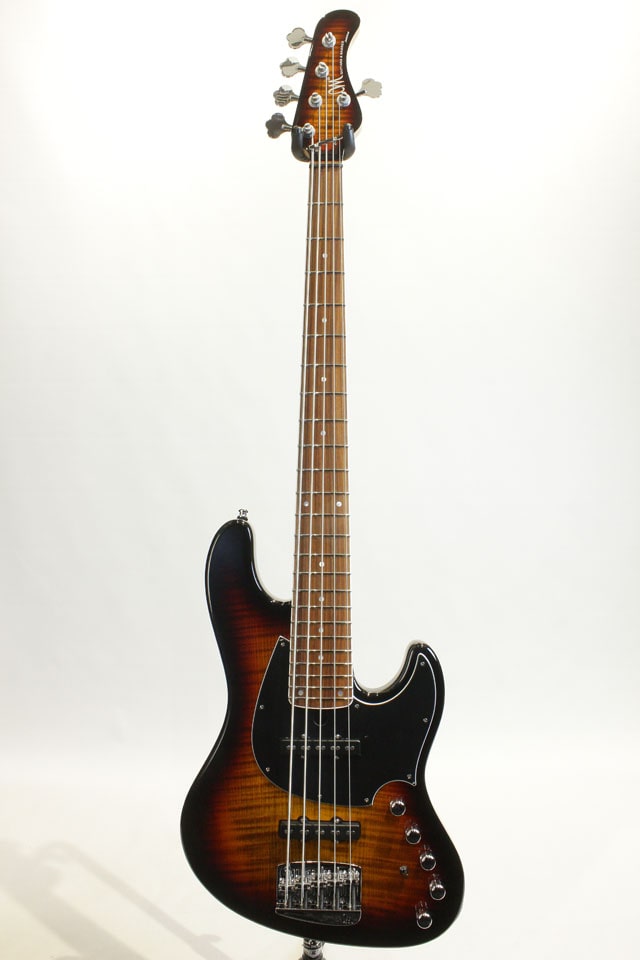 フレイムメイプルトップ&アルダーバックのラミネイトボディ。ボルトオン構造の1pc-ハードロックメイプルネック/パーフェロー指板。ノードストランドNJ5A3ピックアップ&MAYONES M-BP2プリアンプを搭載。総重量約4.35kgと5弦モデルとしては軽量な個体かと思います。24フレット仕様ですので再生音域も広く、ジャンルを問わず幅広いジャンルでご使用頂けるモデルになります。