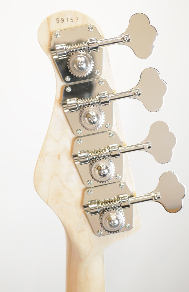 当機ではクラシックシリーズにて通常採用されているラッカーフィニッシュからウレタンフィニッシュに変更したモデルとなっておりますが、こちらの個体は特殊な仕上がりを採用しており、ラッカーの様な塗装吹きっぱなしの質感にて仕上がております。ウレタンフィニッシュはJBアクティブモデルやJJモデルでは通常スペックとして採用されており、以前からクラシックモデルのカスタムオーダーにて外観コンディションとサウンドの両面でご要望の多かったフィニッシュとなり人気のオプション仕様とも言えるモデルとなります。ウレタンフィニッシュによる程良く引き締まったアタックと倍音感が印象的で、懐が深くしなやかな中低域を持つクラシックモデルのトーンにややタイトでクリアな響きが備わった絶妙な仕上がりとなっております。ボトムレンジをブーストしたブーミーなサウンドをアウトプットしてもソリッド感を失わないのはウレタン塗装のメリットの一つです。