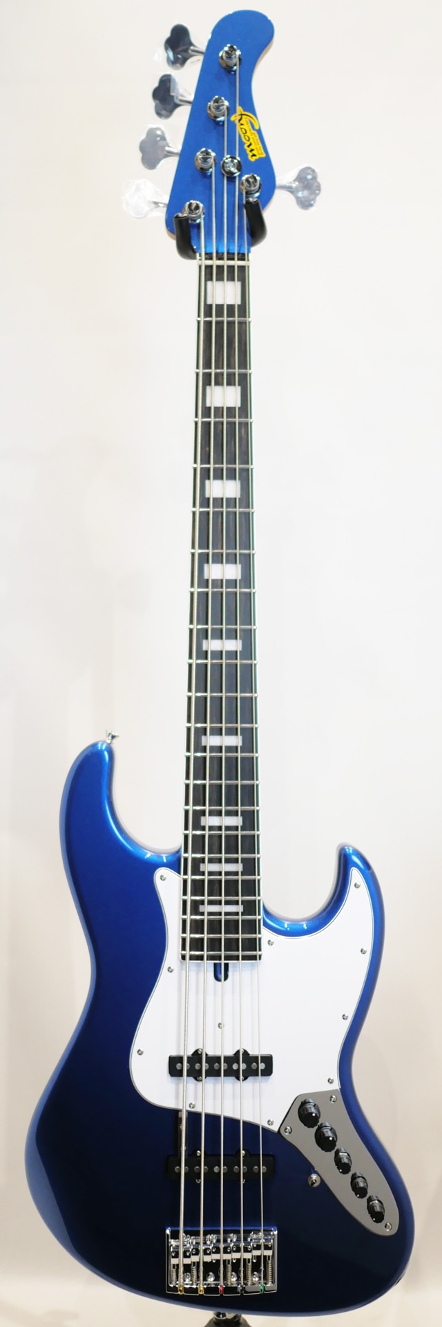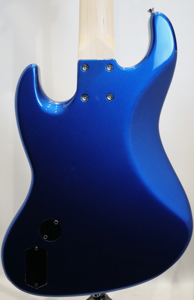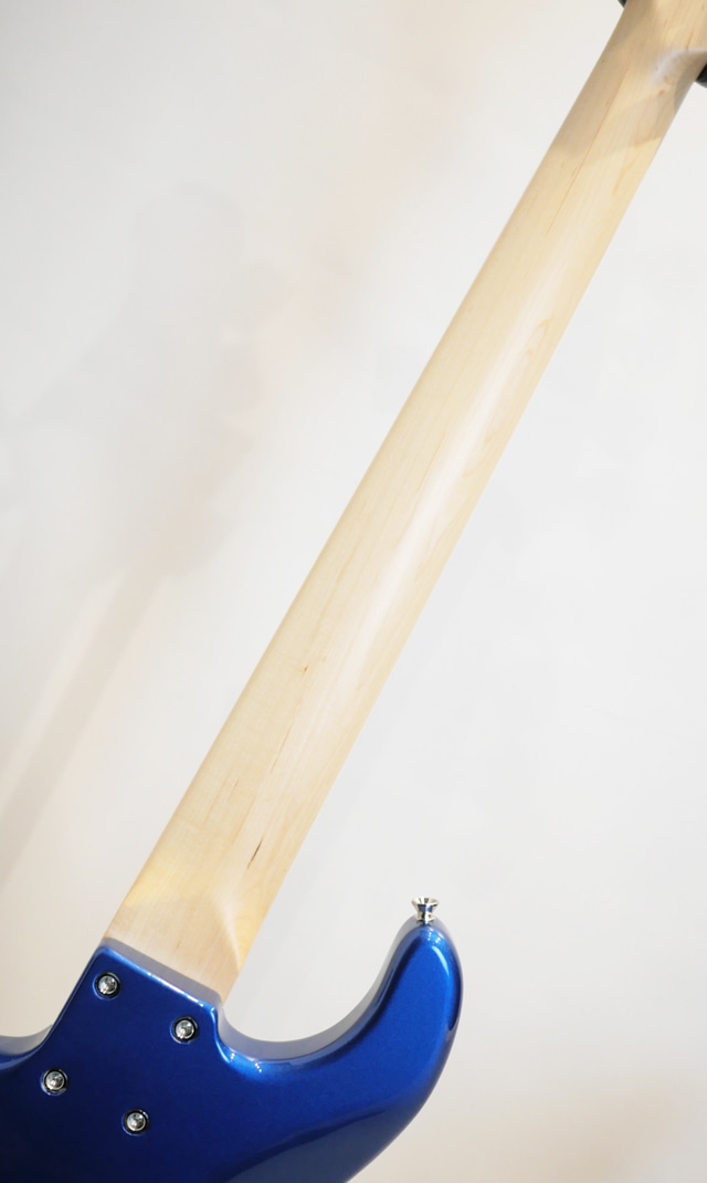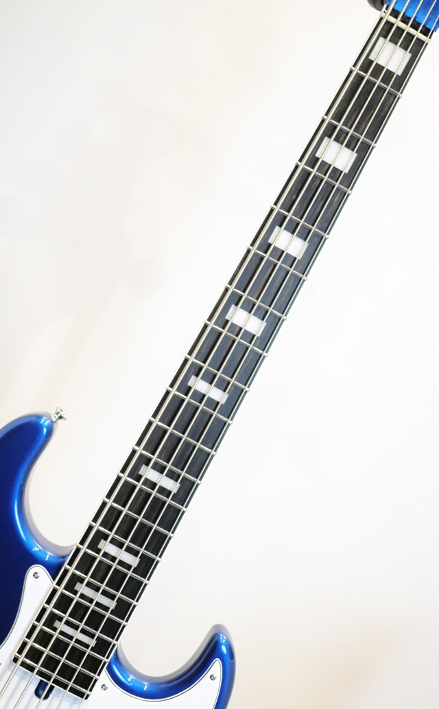 アルダーボディ、ボルトオン構造のメイプルネック/エボニー指板の21フレット仕様。Oxalis JB5&バルトリーニ"XTCT"を搭載。コントロールにリンクしているスイッチは須藤氏拘りのボリュームバイパス・スイッチになります。スイッチのオン/オフでフルテンサウンドとボリュームを絞ったサウンドが瞬時に切替わり、指弾きとスラップなどの音作りに欠かせないコントロールとして装備されておりますので、弾き手のアイデアで幅広くご活用下さいませ。GOTOH製ペグ&ブリッジを装備しパーツカラーはクロームカラーに統一、そして須藤モデルのトレードマークである木製フィンガーレストをマウント。