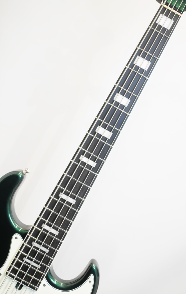 アルダーボディ、ボルトオン構造のメイプルネック/エボニー指板の21フレット仕様。オリジナルピックアップMJB575&バルトリーニ"XTCT"を搭載。コントロールにリンクしているスイッチは須藤氏拘りのボリュームバイパス・スイッチになります。スイッチのオン/オフでフルテンサウンドとボリュームを絞ったサウンドが瞬時に切替わり、指弾きとスラップなどの音作りに欠かせないコントロールとして装備されておりますので、弾き手のアイデアで幅広くご活用下さいませ。GOTOH製ペグ&ブリッジを装備しパーツカラーはクロームカラーに統一、そして須藤モデルのトレードマークである木製フィンガーレストをマウント。そして、本機は今回からシグネイチャーモデルに加わったカラー”Ocean Turquoise”になります。さらに!ヘッド裏には須藤氏直筆サインが入っております初回ロットの希少な1本でございます。