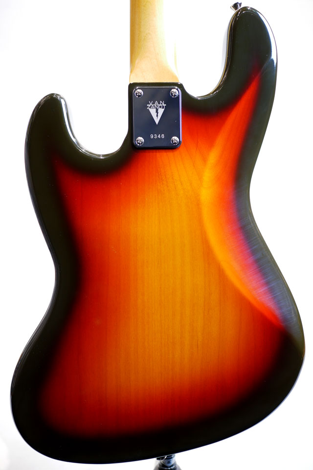 当時目新しかった極薄フィニッシュをいち早く取り入れたVanandt、その人気は瞬く間に広がり今も尚根強い支持を得ております。アルダーボディ、メイプルネック/ローズ指板とトラディショナルなスペックにて構成されたモデル。手元のコントロールはスタックポットにてオーダー致。Vanzandtの最大の特徴は極薄のニトロセルロースラッカーではないでしょうか。塗装を薄くする事で弦振動がベース全体に伝わっております。国産特有の適度な硬質感もあり、タイトに引き締まった太く発音の良いサウンドを響かせております。