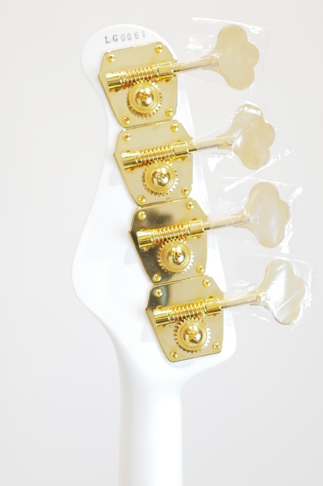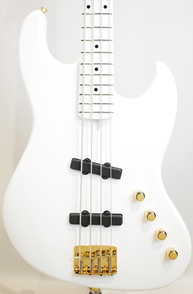 こちらのJJ-4は、アッシュボディにメイプルネック&メイプル指板に、ボディからヘッド、指板まですべてが白色に塗装されており、ペグやノブ、ナットまでパーツはすべてゴールドパーツを使用しており、ラリー・グラハム シグネチャーを象徴する唯一無二のルックスに、Bartolini 9Sピックアップ・BartoliniのNTBTプリアンプを搭載しており、ラリー・グラハムのサウンドが全身で体感できるスペックになっております。