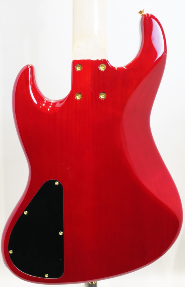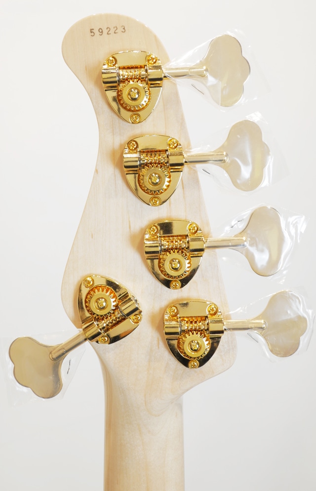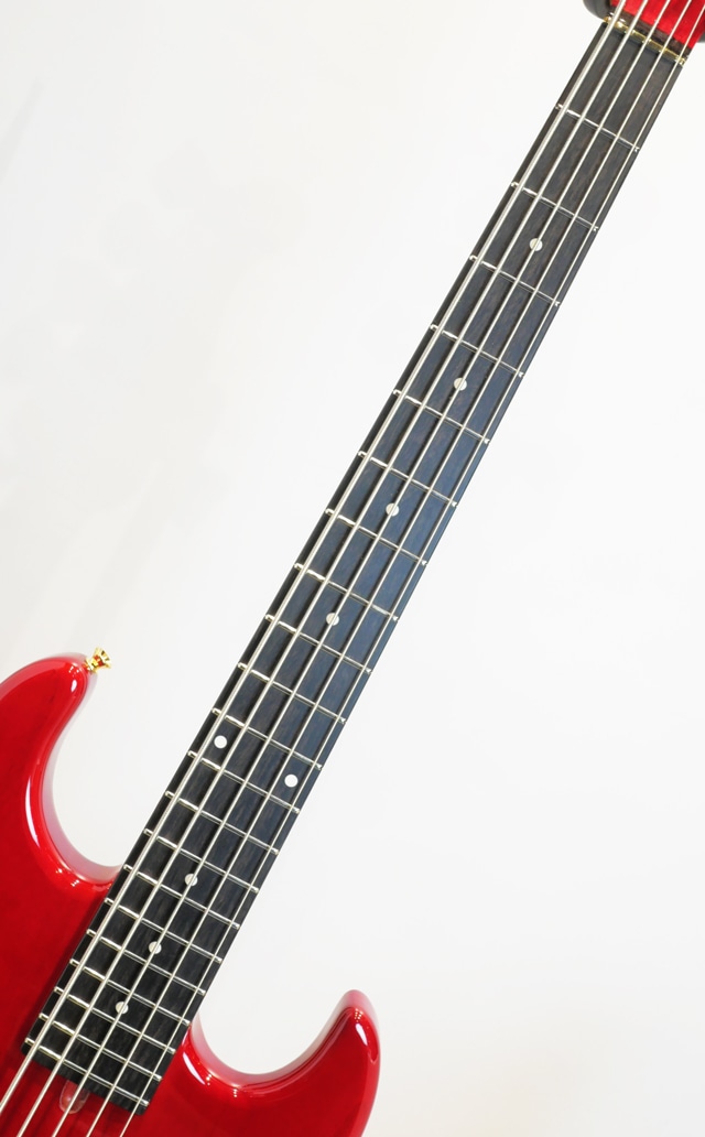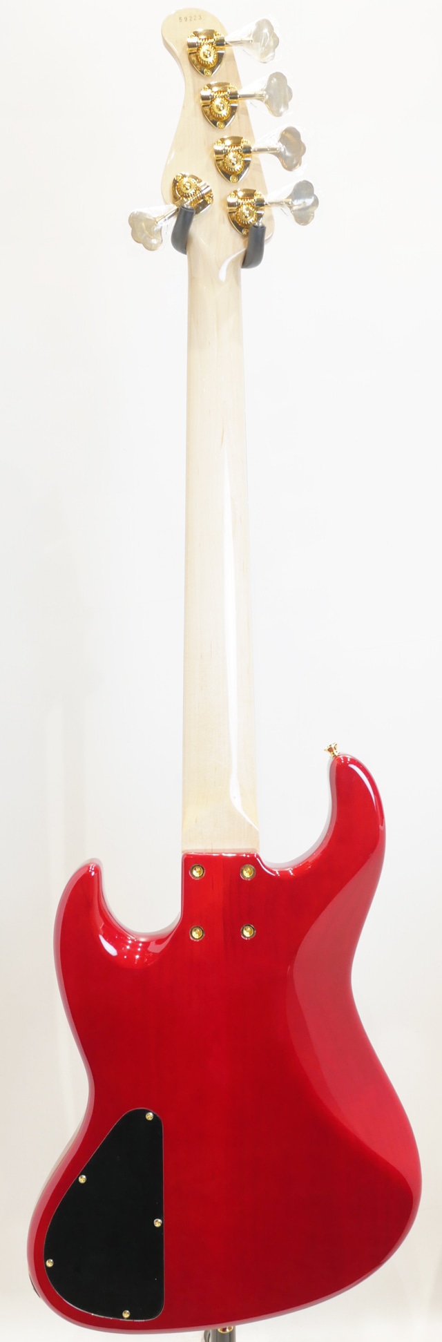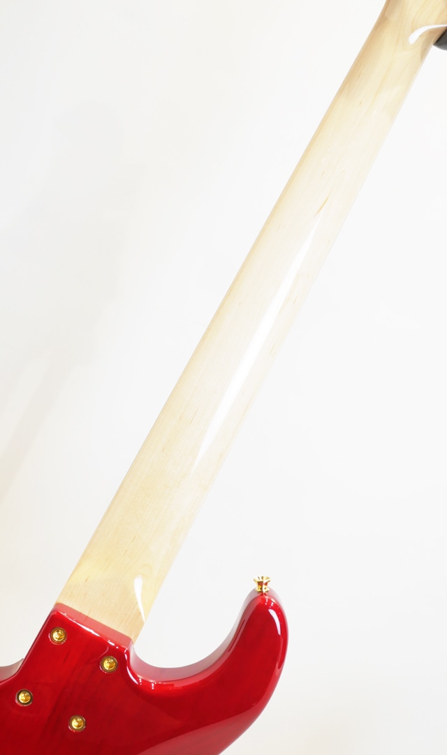 アルダーボディ、ボルトオン構造のメイプルネック/エボニー指板の21フレット仕様。オリジナルピックアップMJB575&バルトリーニ"XTCT"を搭載。コントロールにリンクしているスイッチは須藤氏拘りのボリュームバイパス・スイッチになります。スイッチのオン/オフでフルアップサウンドとボリュームを絞ったサウンドが瞬時に切替わり、指弾きとスラップなどの音作りに欠かせないコントロールとして装備されておりますので、弾き手のアイデアで幅広くご活用下さいませ。GOTOH製ペグ&ブリッジを装備しパーツカラーはゴールドカラーに統一、そして須藤モデルのトレードマークである木製フィンガーレストをマウント。