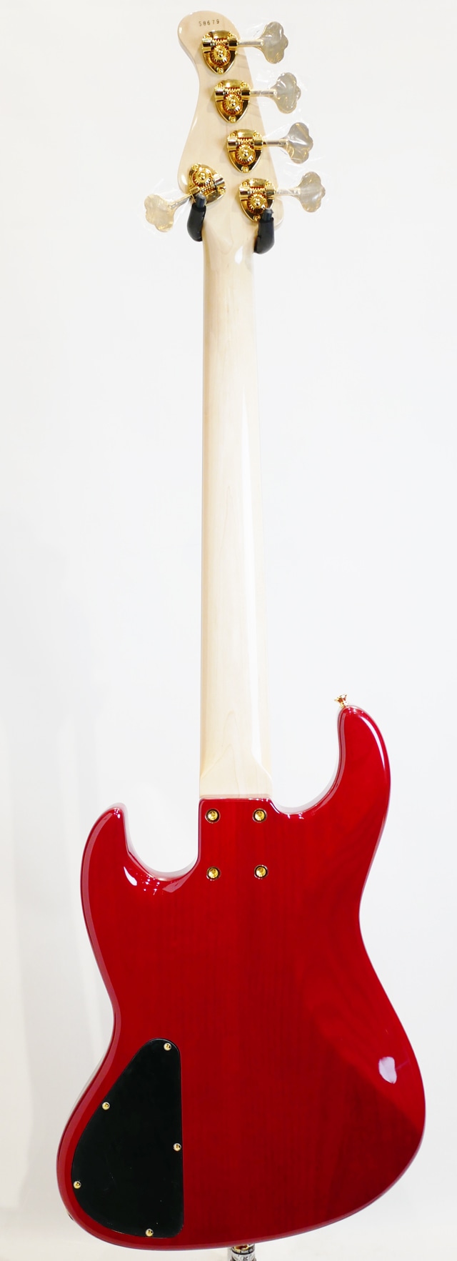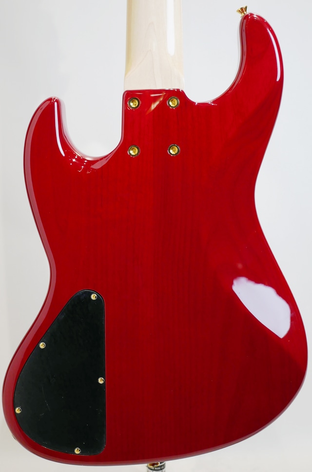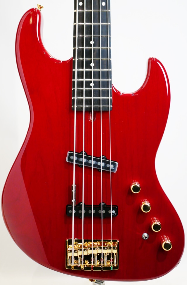 アルダーボディ、ボルトオン構造のメイプルネック/エボニー指板の21フレット仕様。オリジナルピックアップMJB575&バルトリーニ"XTCT"を搭載。コントロールにリンクしているスイッチは須藤氏拘りのボリュームバイパス・スイッチになります。スイッチのオン/オフでフルアップサウンドとボリュームを絞ったサウンドが瞬時に切替わり、指弾きとスラップなどの音作りに欠かせないコントロールとして装備されておりますので、弾き手のアイデアで幅広くご活用下さいませ。GOTOH製ペグ&ブリッジを装備しパーツカラーはゴールドカラーに統一、そして須藤モデルのトレードマークである木製フィンガーレストをマウント。